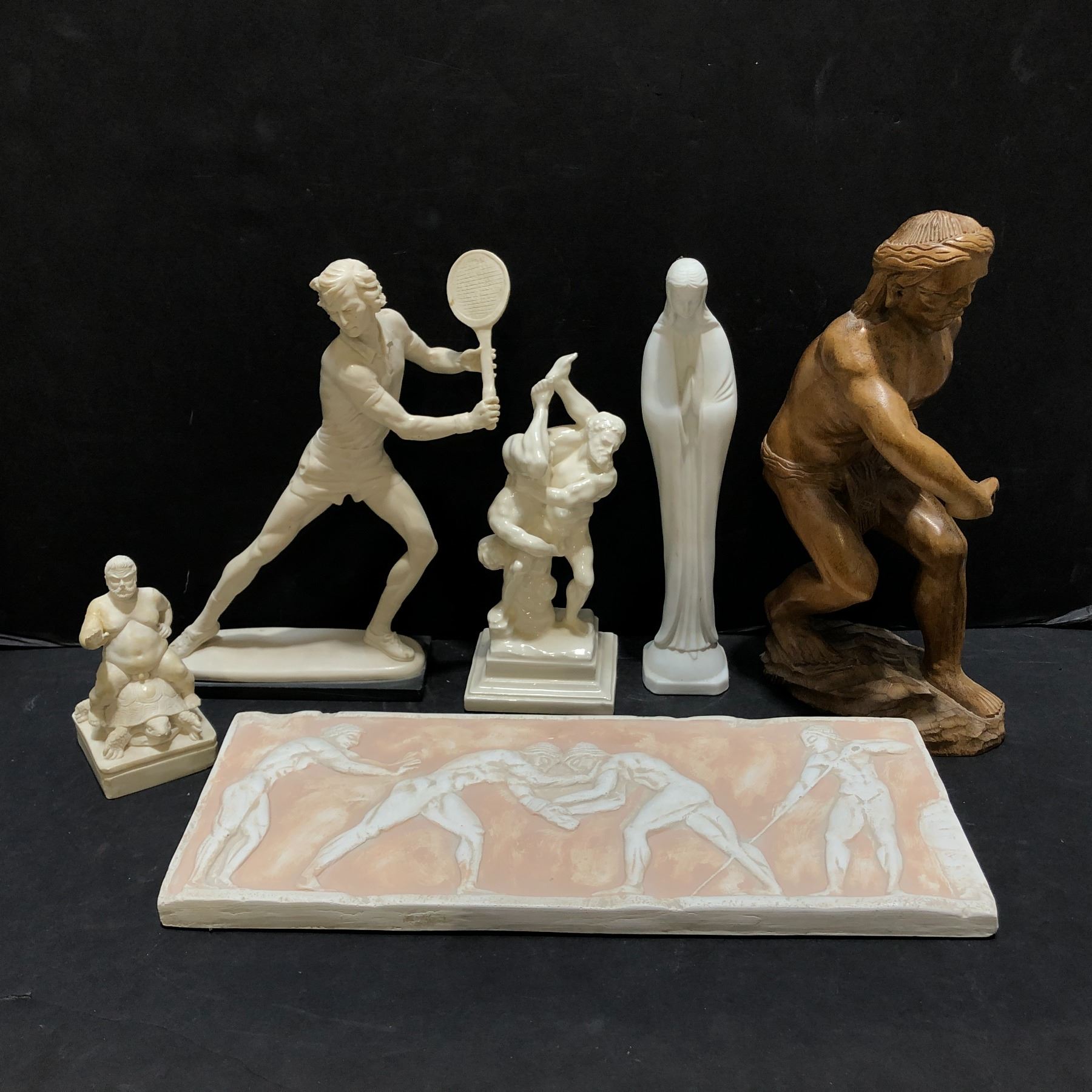 Group of assorted decor - includes Bacchus male nude / Hercules kills Trojan King etc