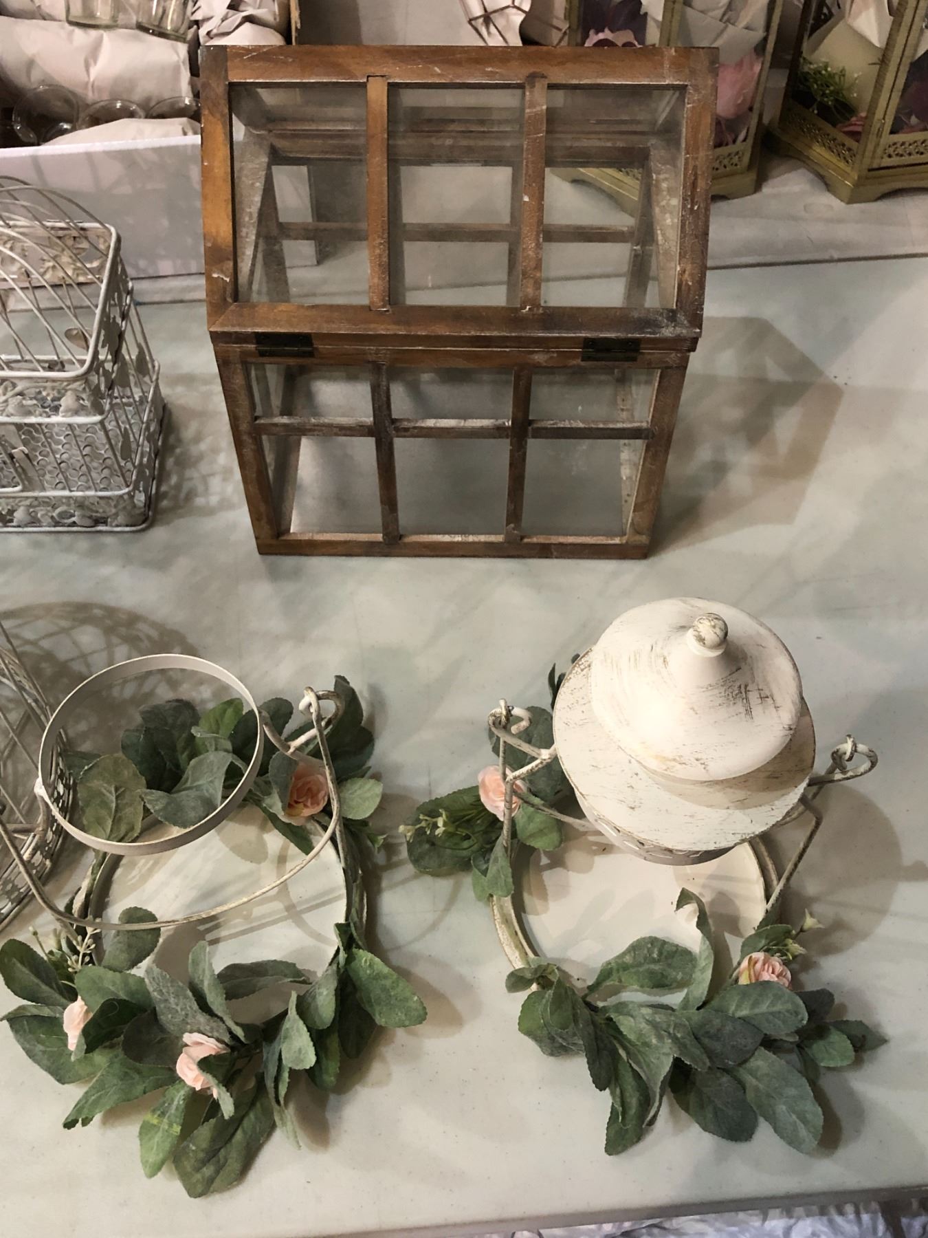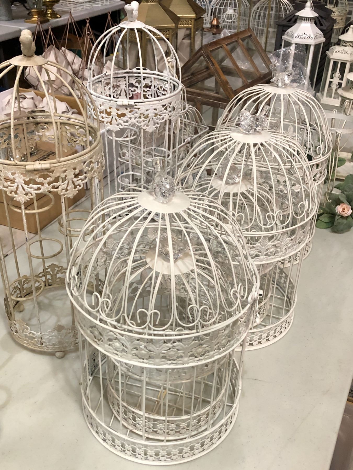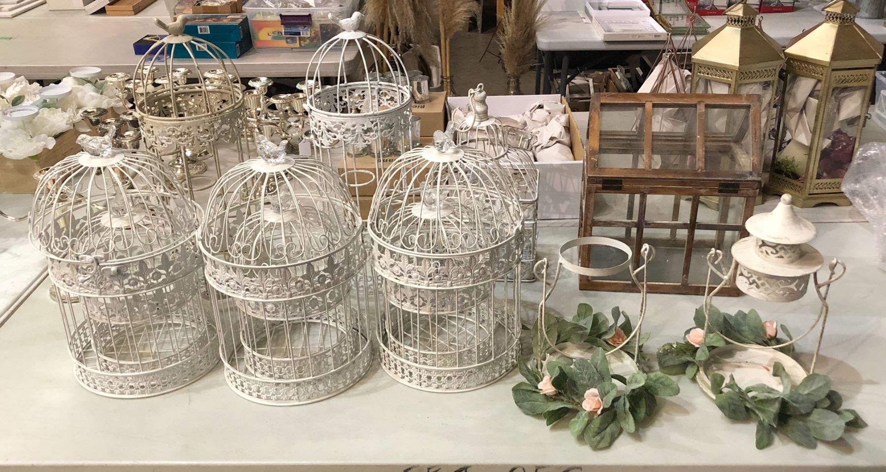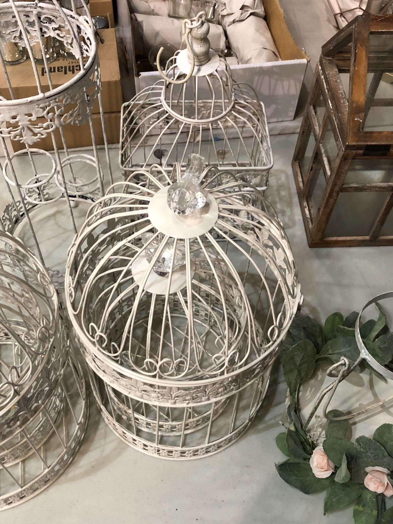 Group of assorted decor items including - decor bird cages, candle holders, etc...