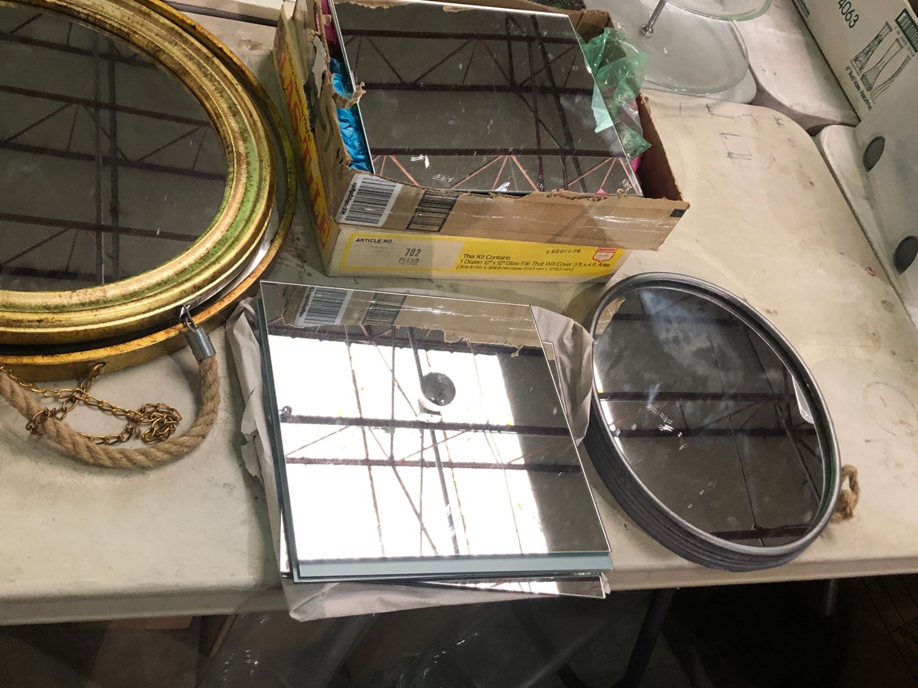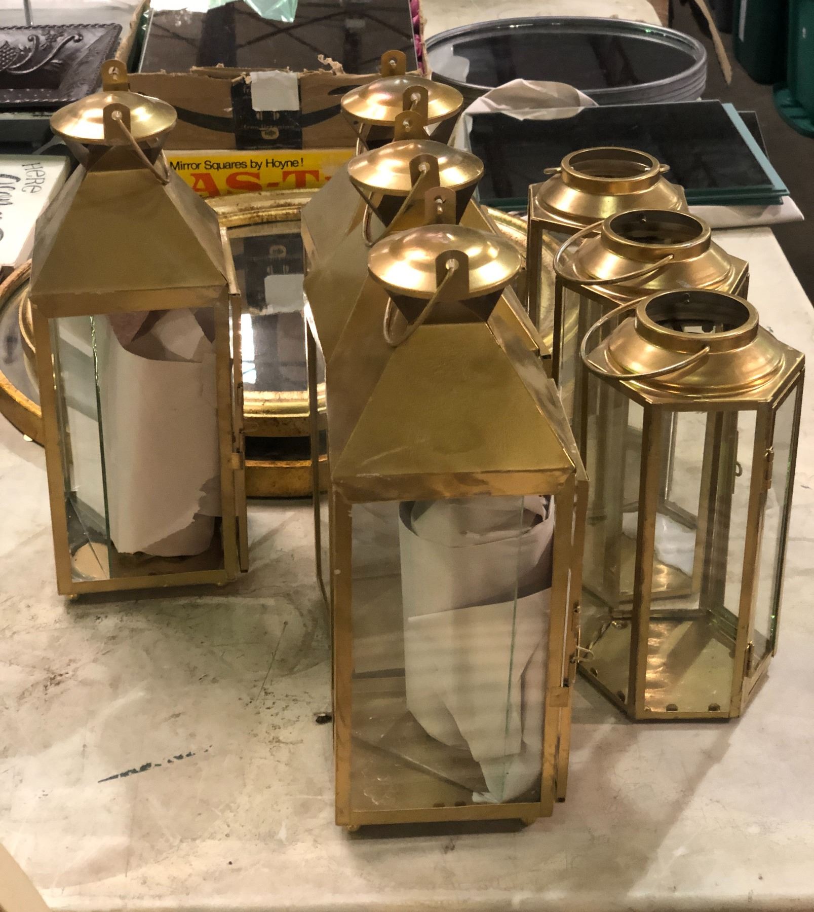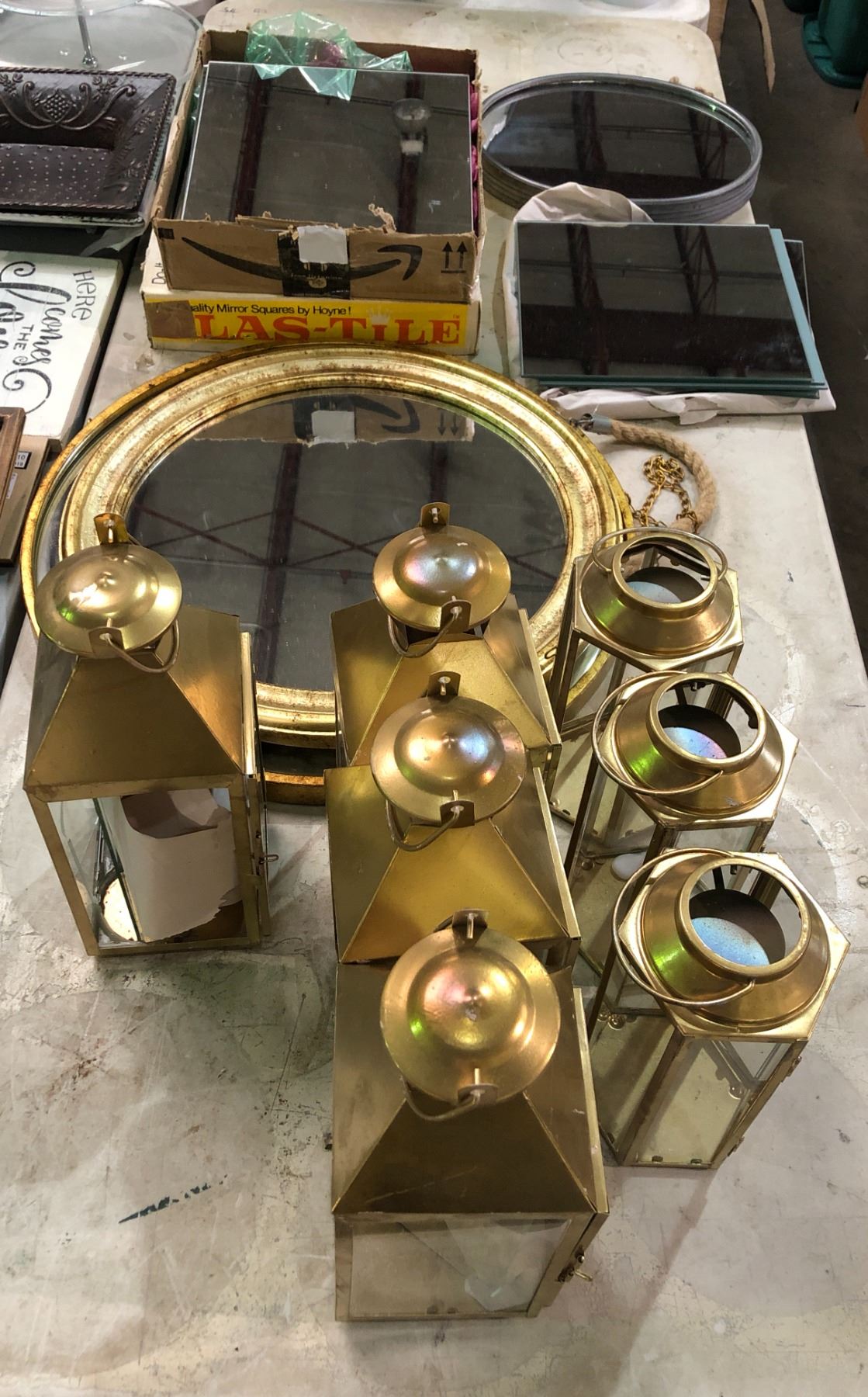 Group of assorted decor items including - various mirrors, candlestick holds, lanterns candle holder