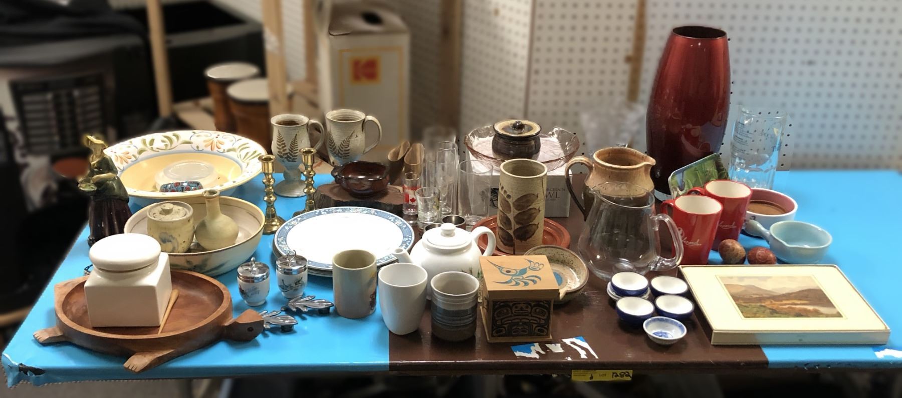 Group of assorted decorative items - includes plates / tea pots / wine glasses etc