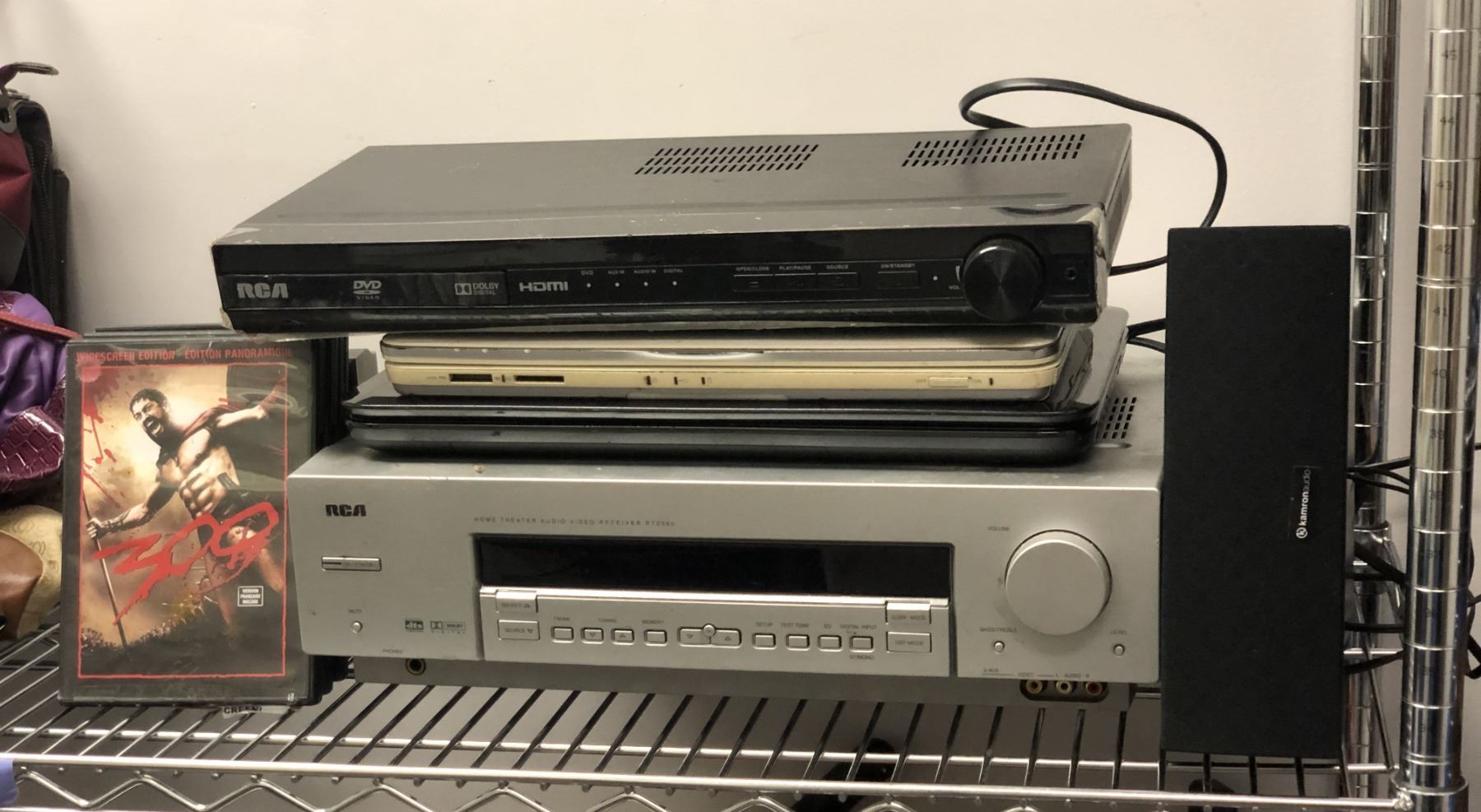 Group of assorted electronic items - includes RCA home theatre audio video receiver / RCA DVD video player / Sony computer - no. PCG-3C2L / Kamron audio speakers etc
