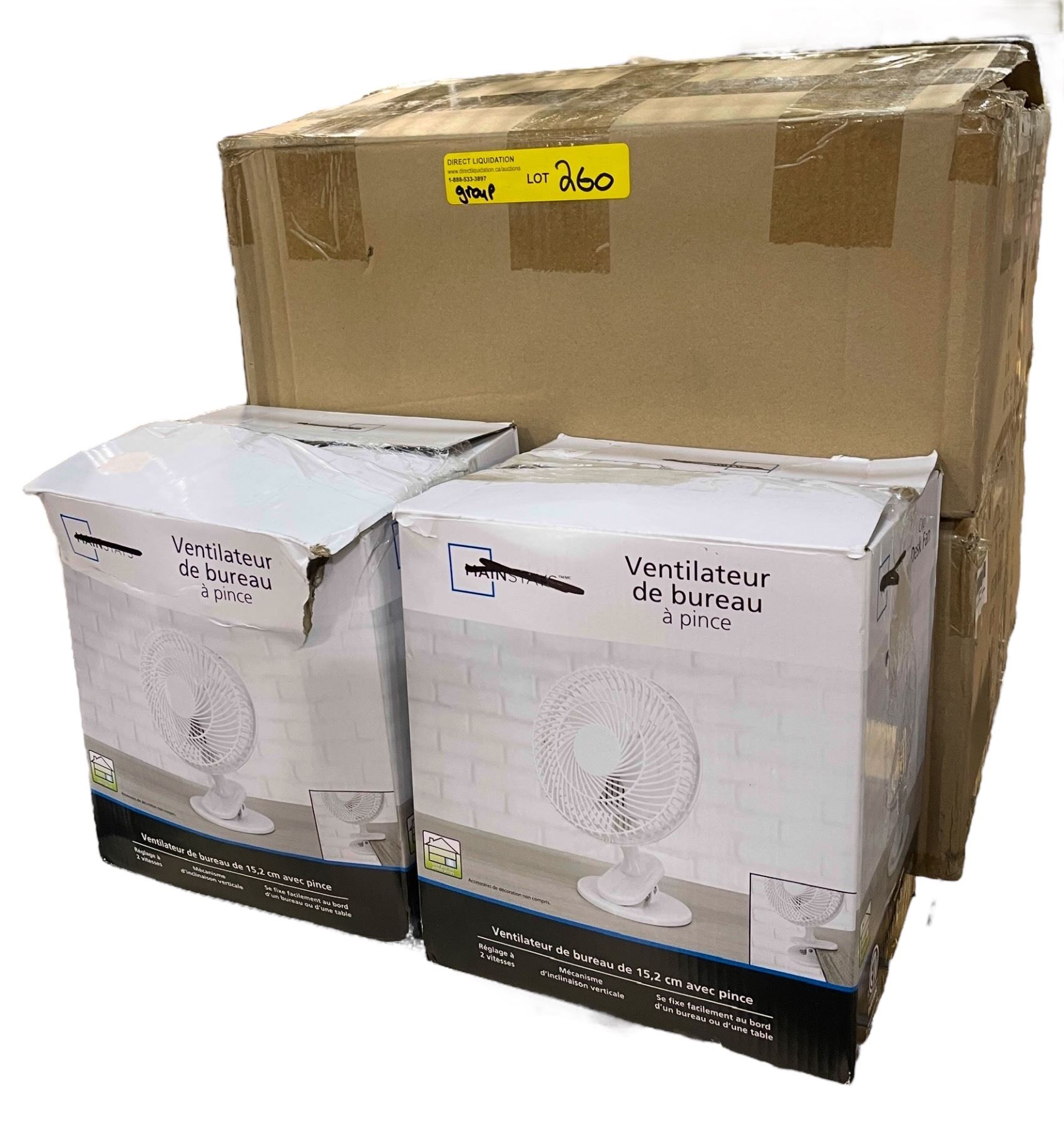 Group of assorted - incldues 2 Mainstays 6in desk fan w. clip & two 3-light retro bedroom hallway luiminaire