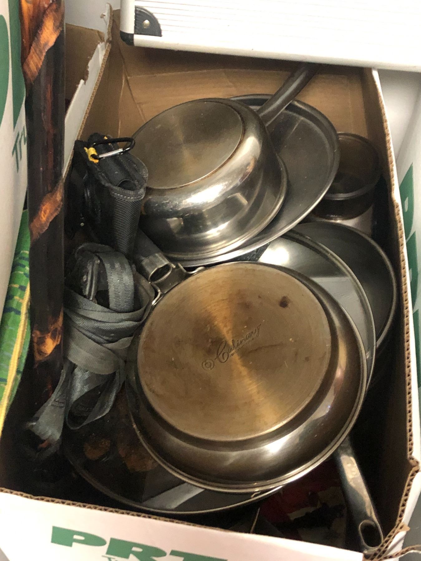 Group of assorted items - includes Salton microwave / pots and pans / bar stool etc