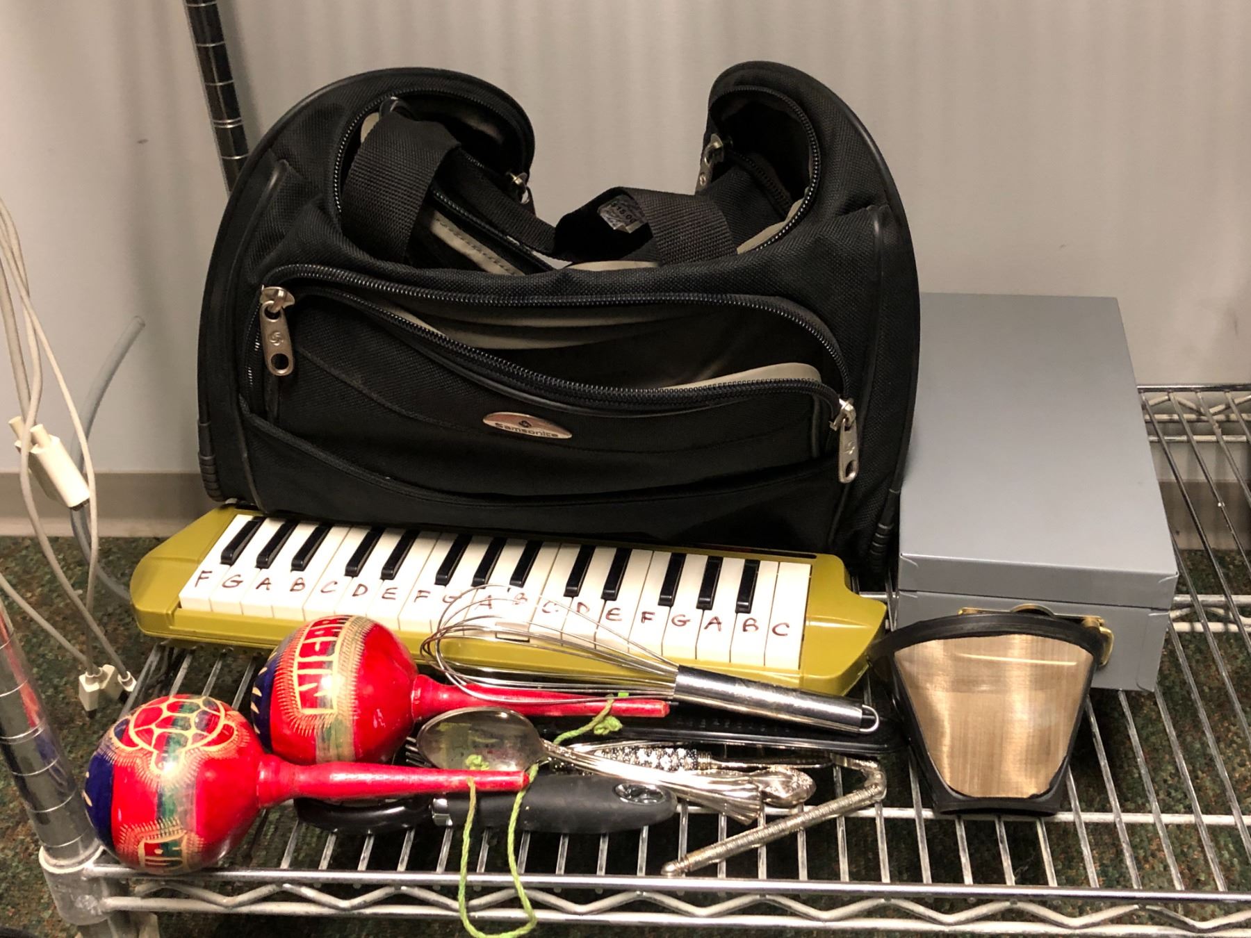 Group of assorted items - includes storage box / Samsonite work bag / mini piano etc
