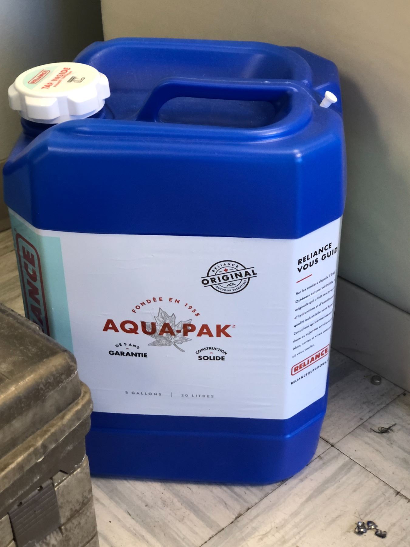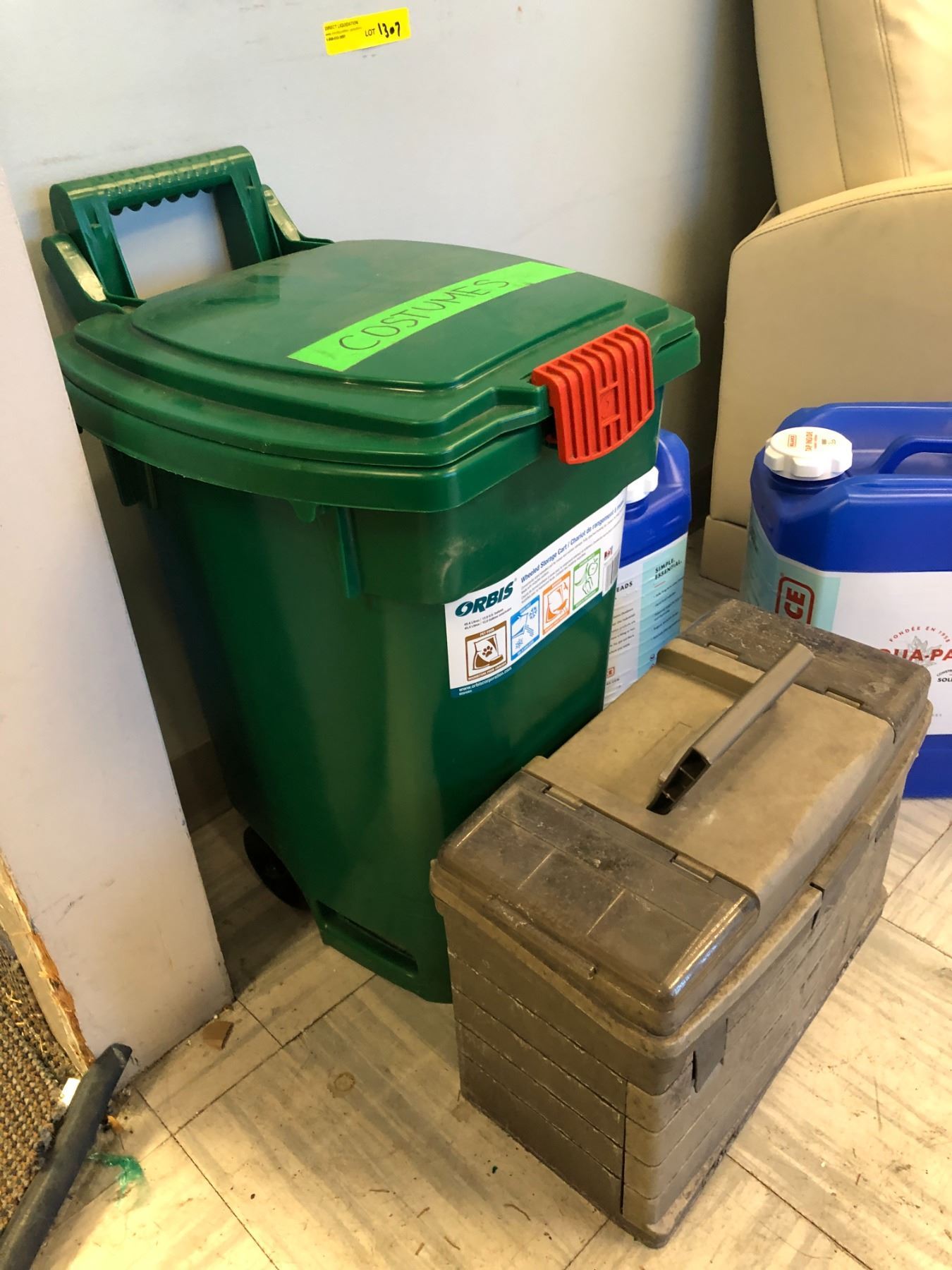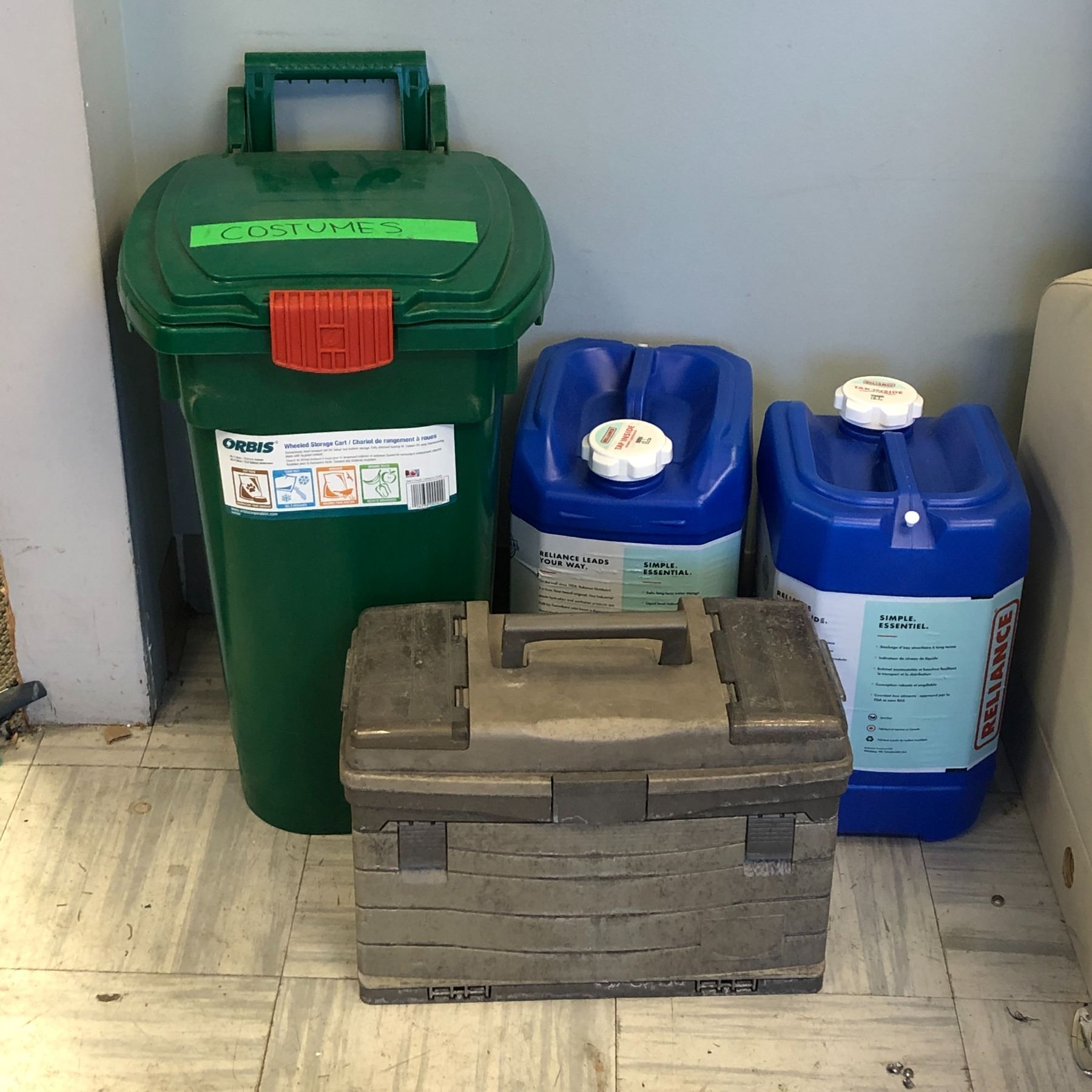 Group of assorted items - includes storage wheeled cart / toolbox & 2 water storages