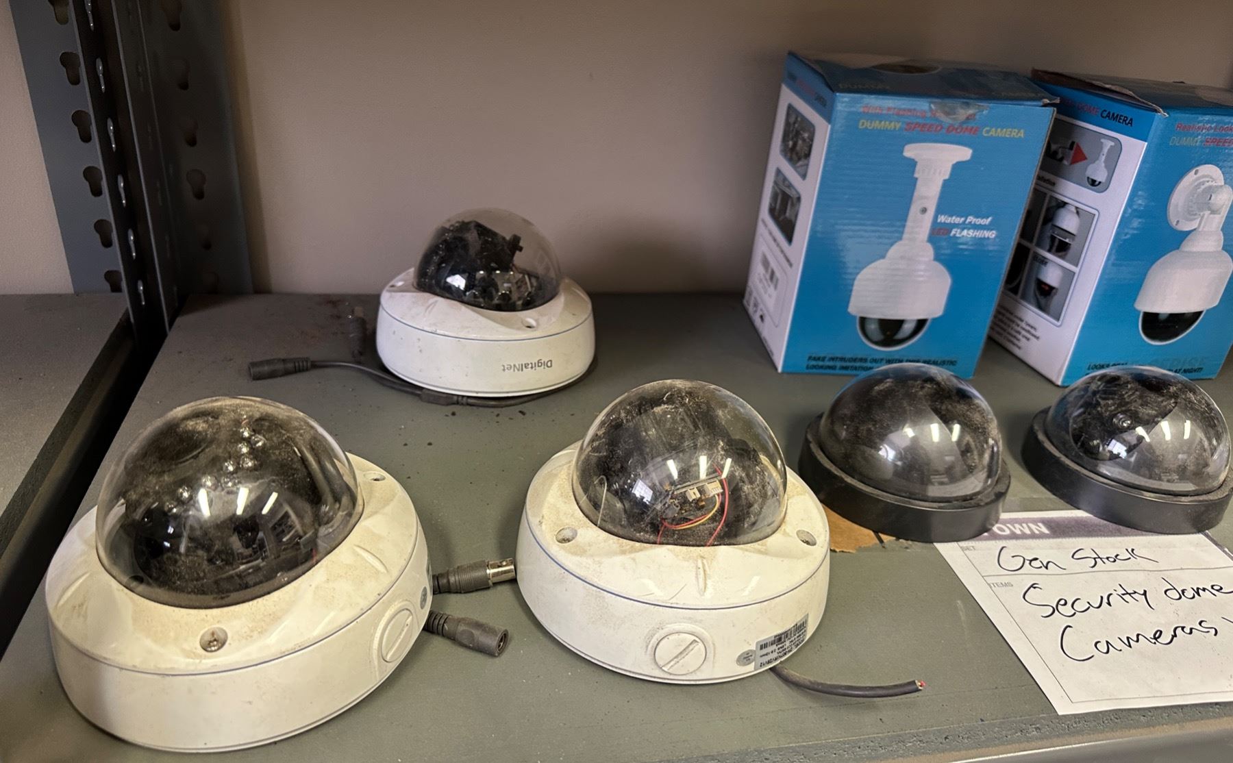 Group of assorted real & dummy waterproof security cameras - includes HikVision etc