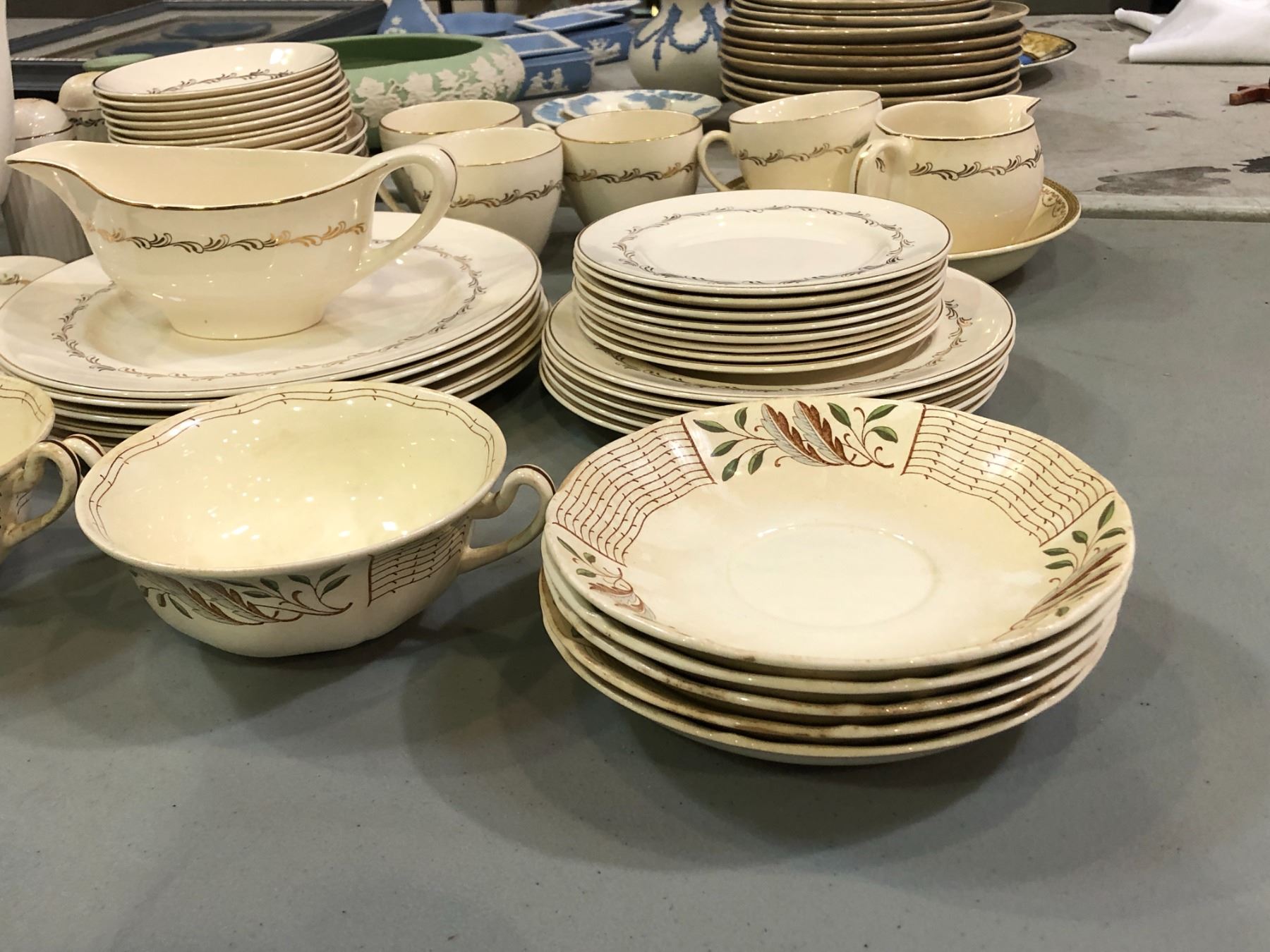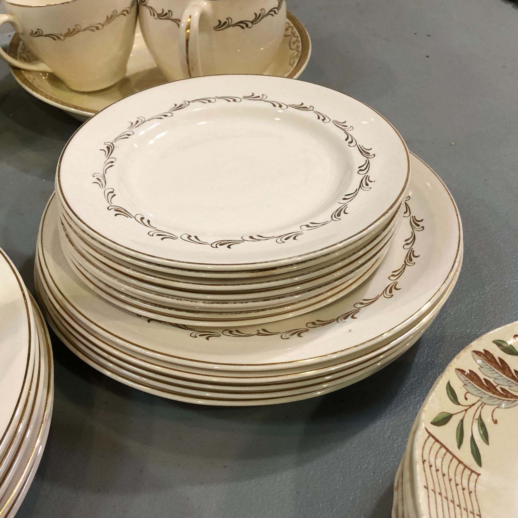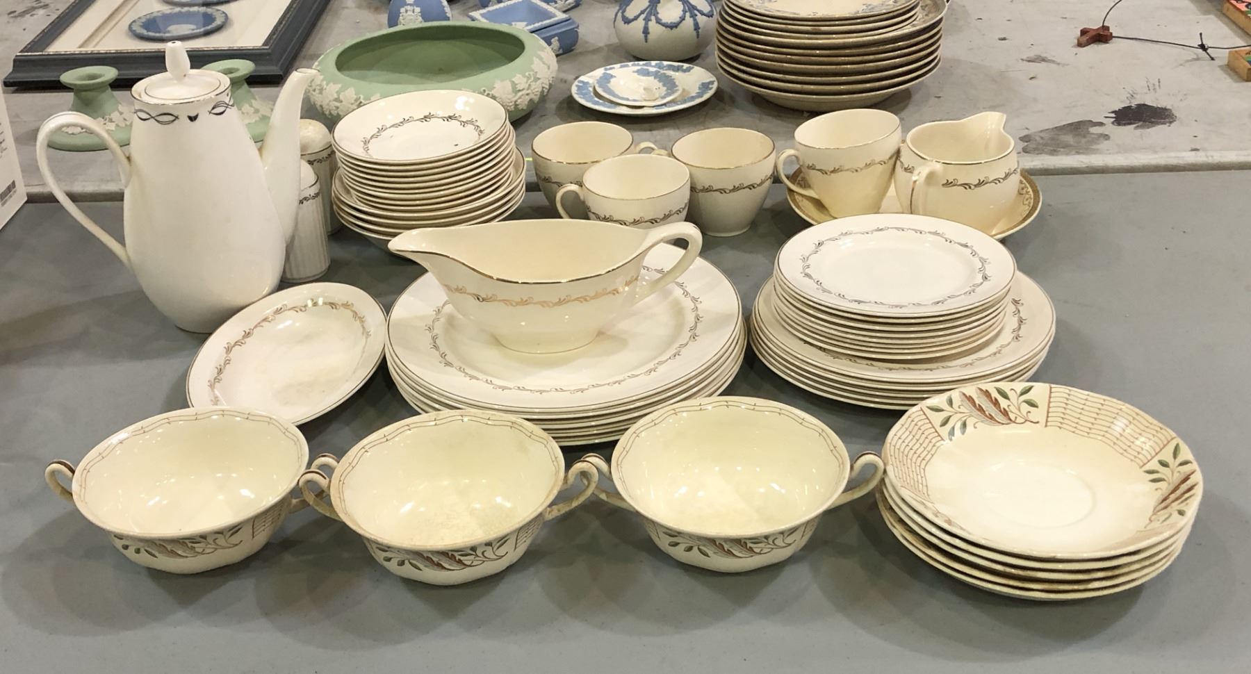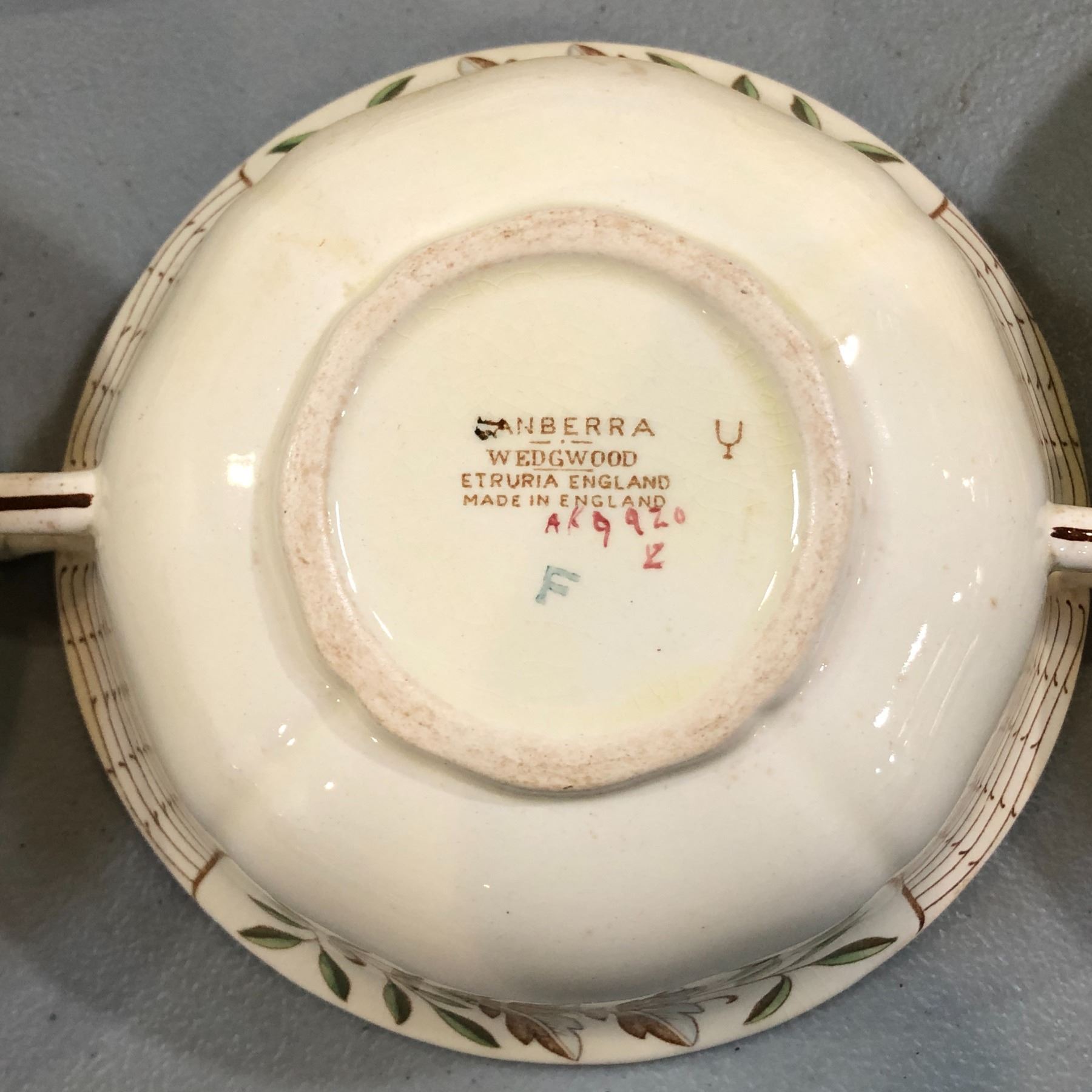 Group of assorted tableware - includes 5 Wedgwood plates / 3 Canberra Wedgwood soup bowls / Johnson bros dinner plates, saucers, gravy boat etc