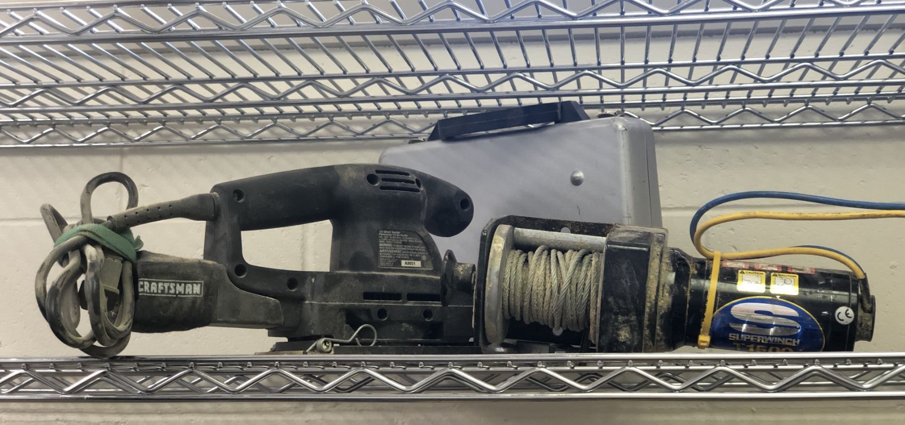 Group of assorted tool - includes Craftsman 1/3 sheet sander / super winch T1500 & Mastercraft drill bits