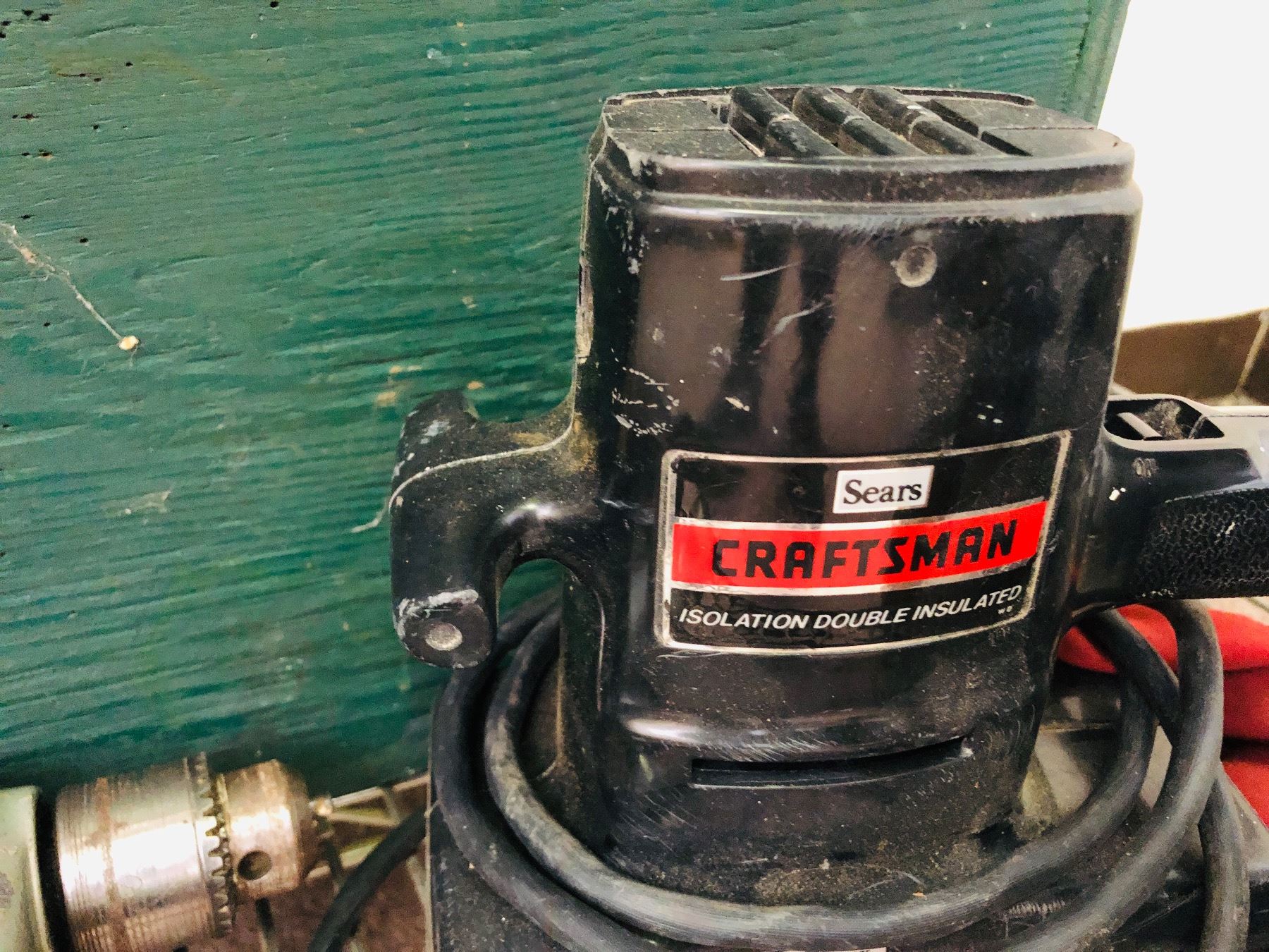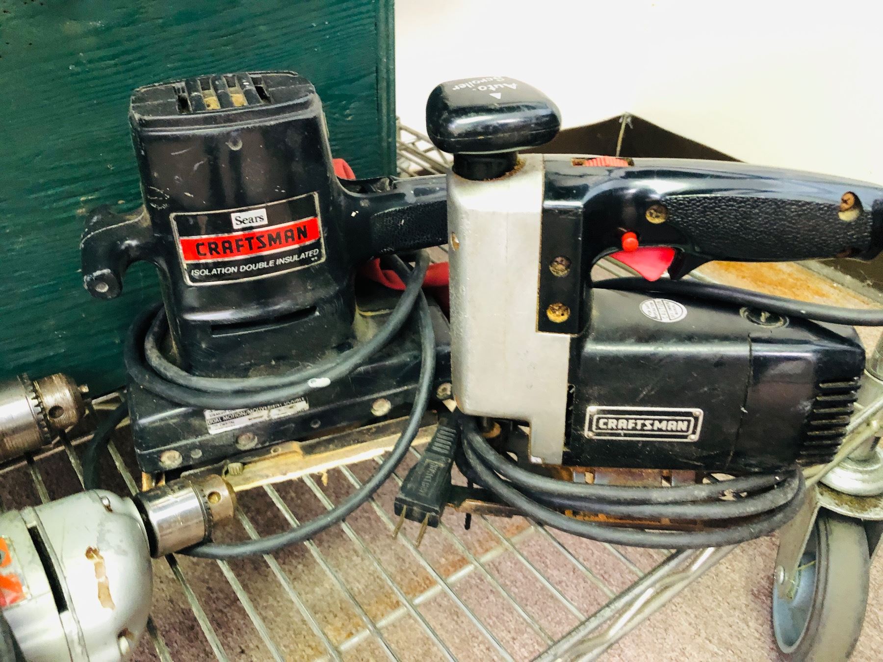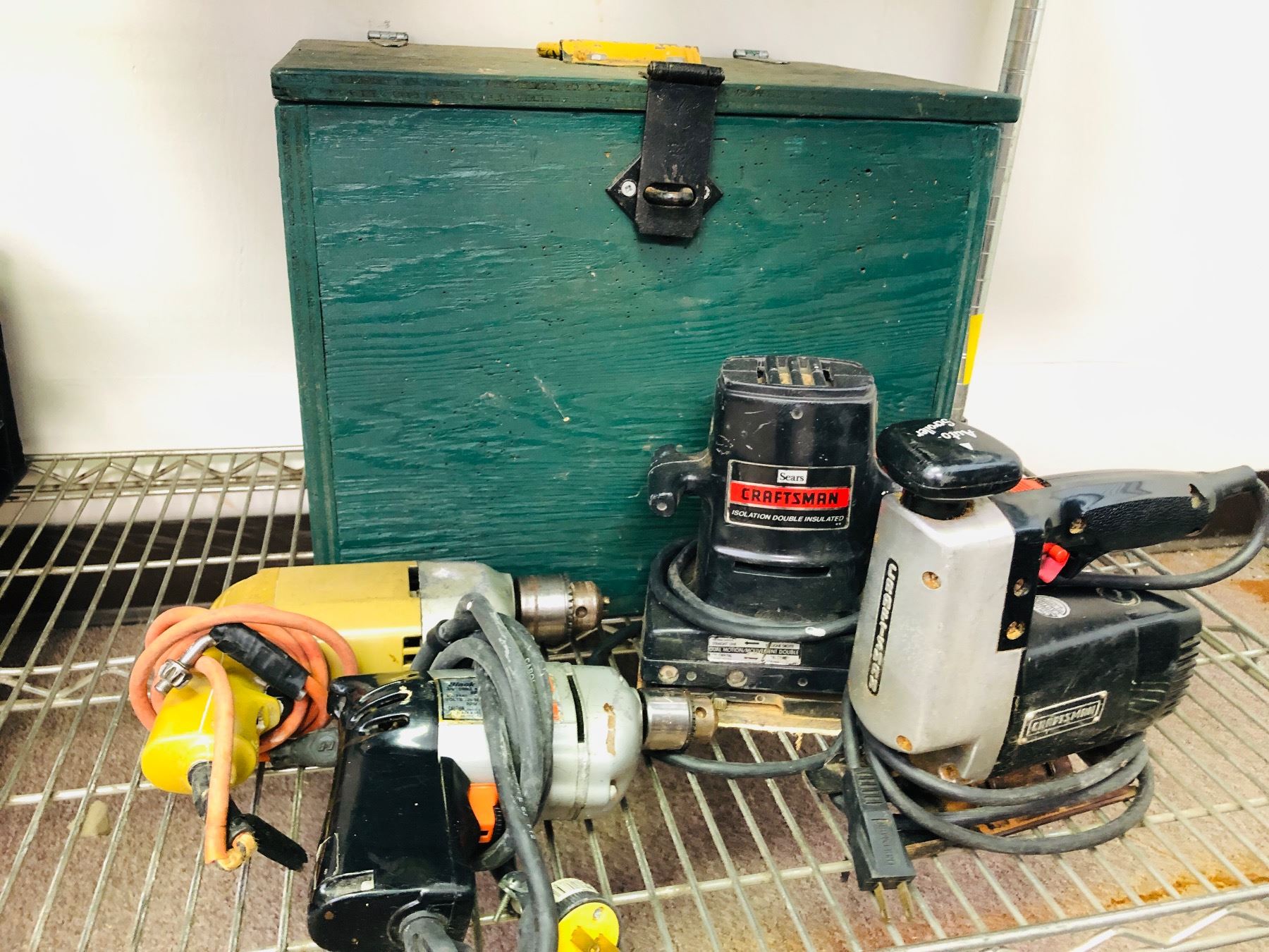 Group of assorted tools & toolbox - includes 2 Craftsman dual motion sanders (model - 315.17252) / Black & Decker double insulated drill etc