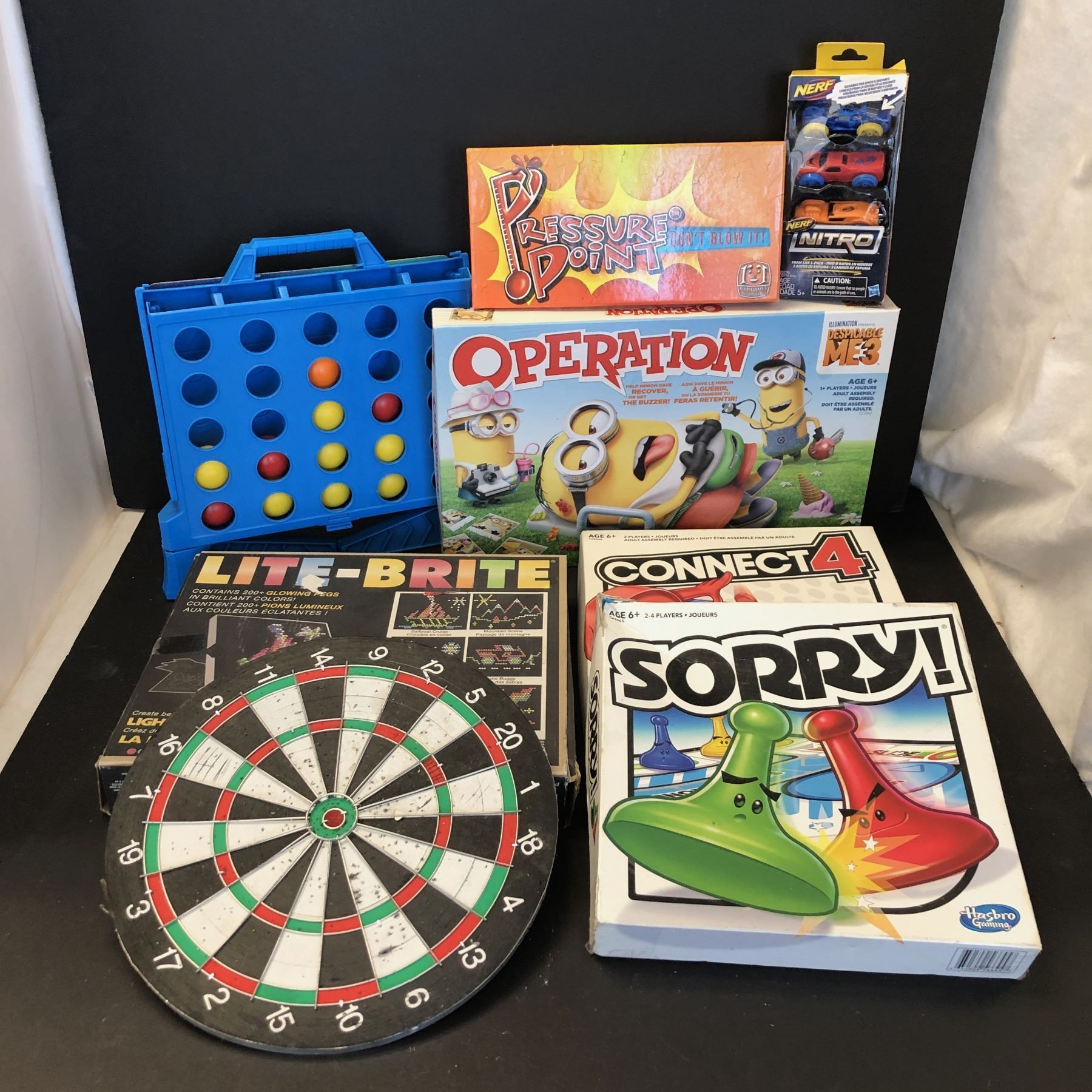 Group of assorted toys & games - includes operation Connect 4 / Pressure point etc