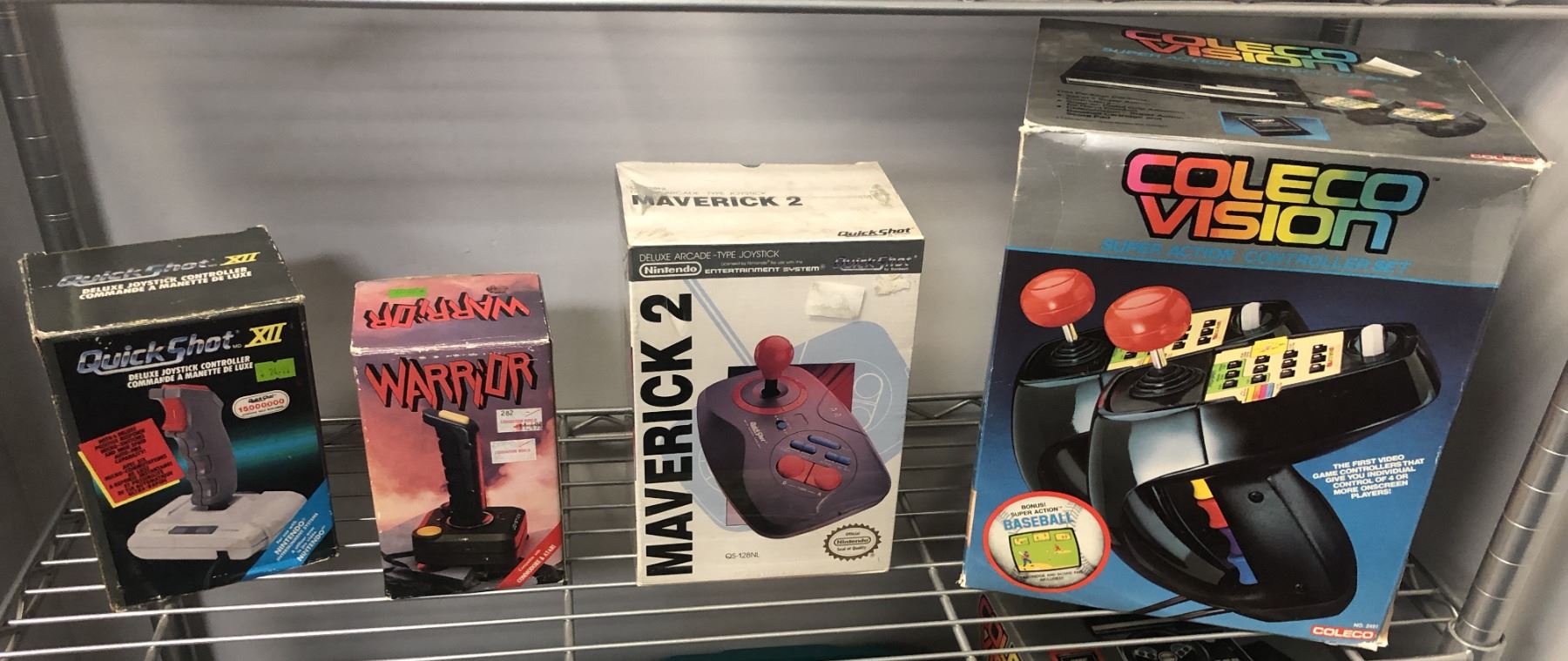 Group of assorted vintage controllers - includes Quick Shot Deluxe joystick/ Warrior joystick/ Nintendo Maverick 2 arcade-type joystick & Coleco Super Action controller set