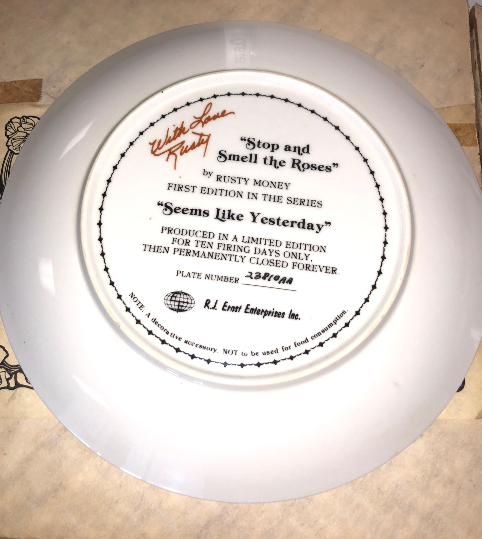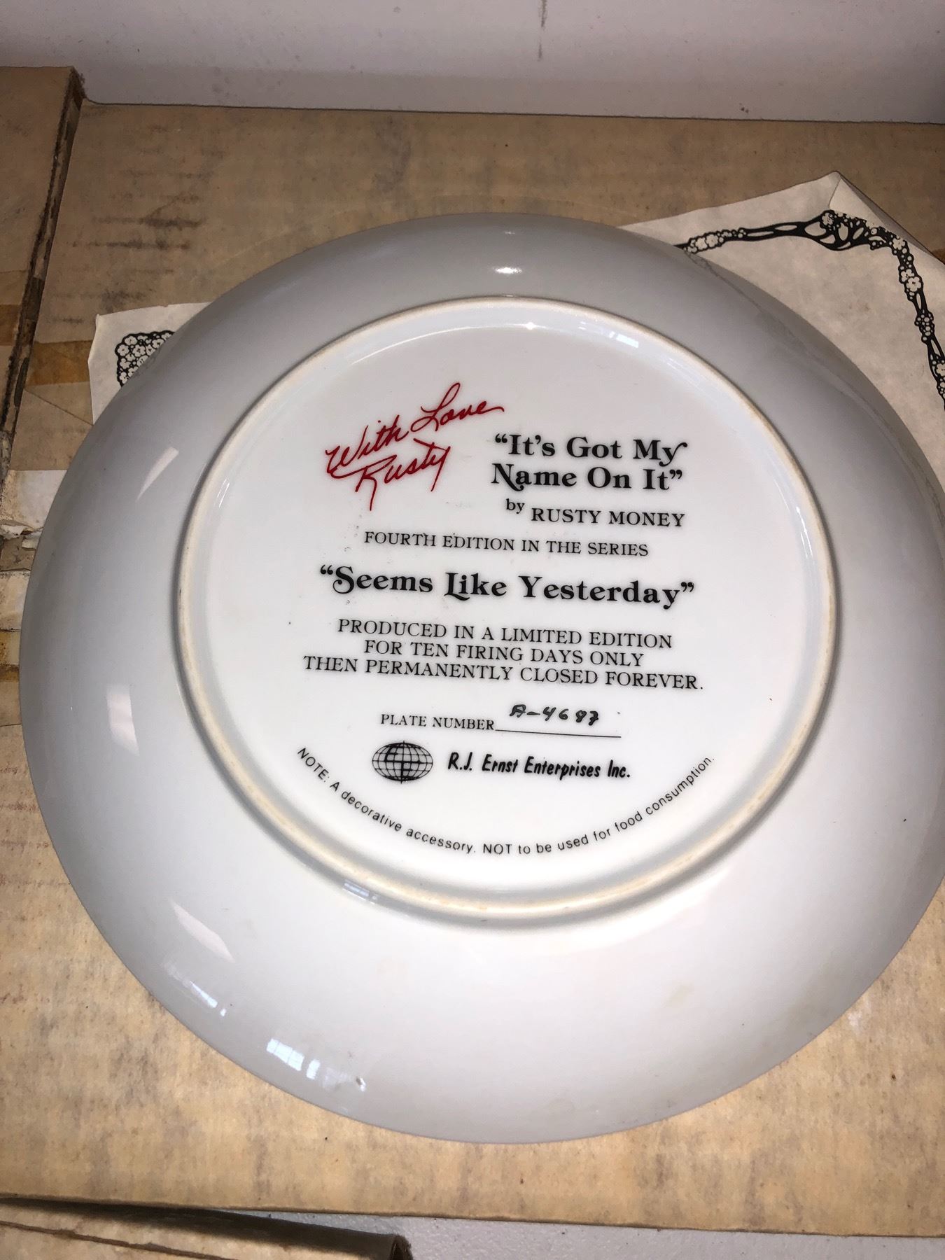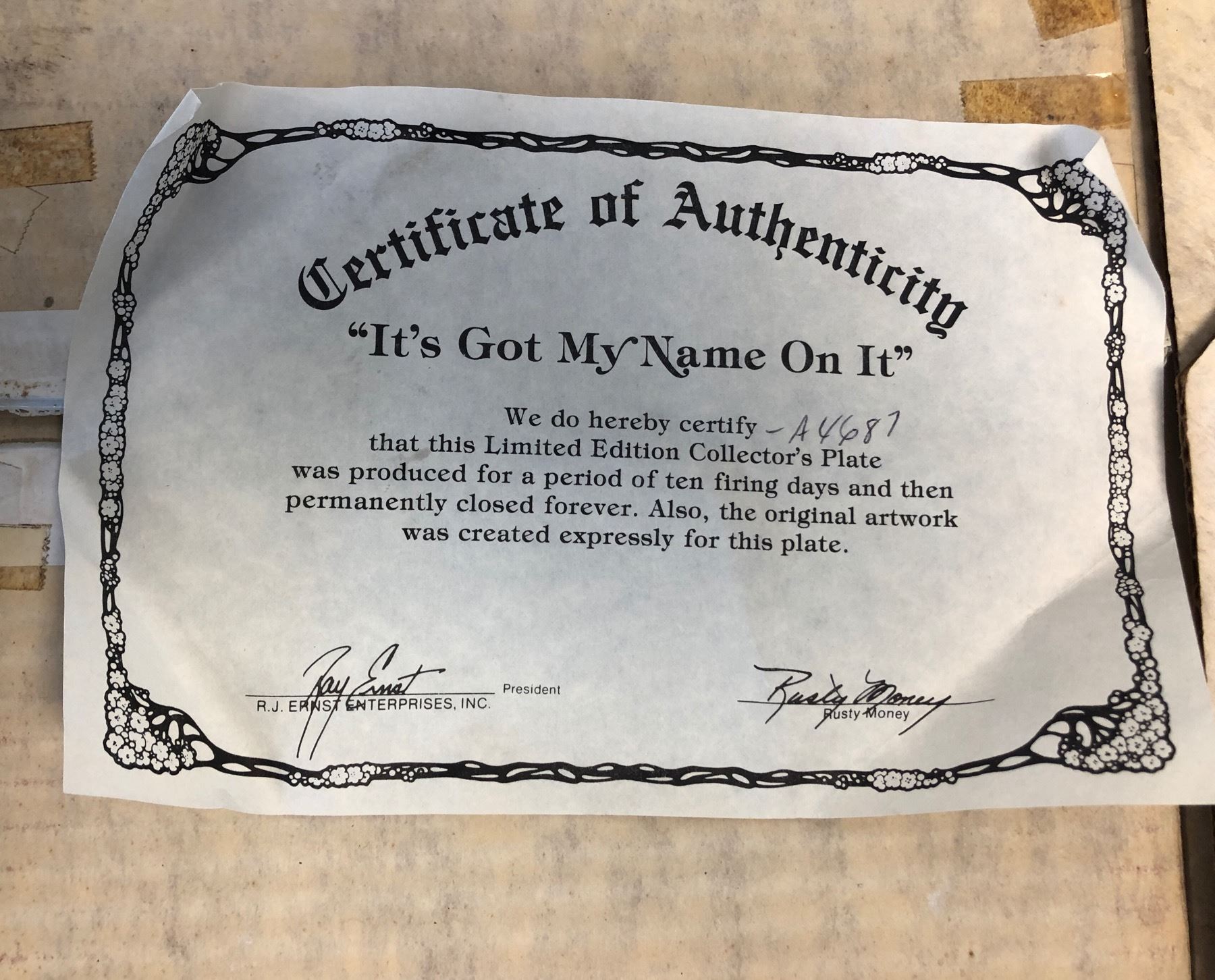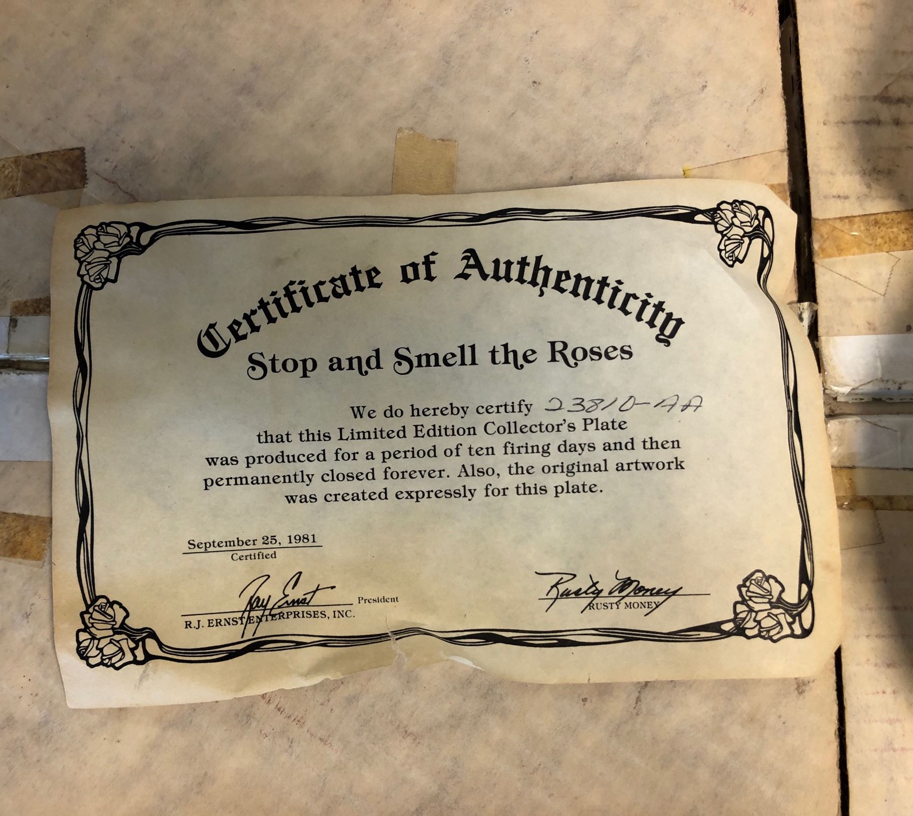 Group of assorted vintage decorative plates (some w/ COAs) from estate - includes "Stop And Smell The Roses"/ "Gone With The Wind"/ "It's Got My Name On It" (approx. 7 pcs)