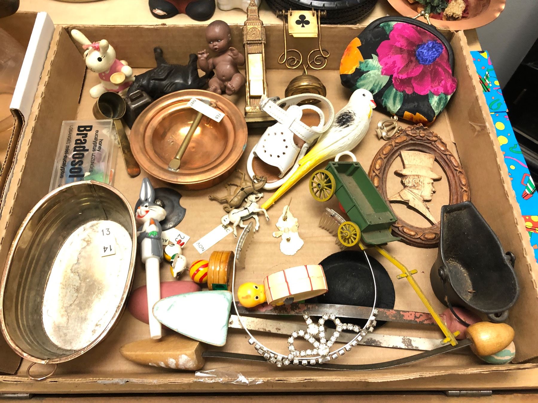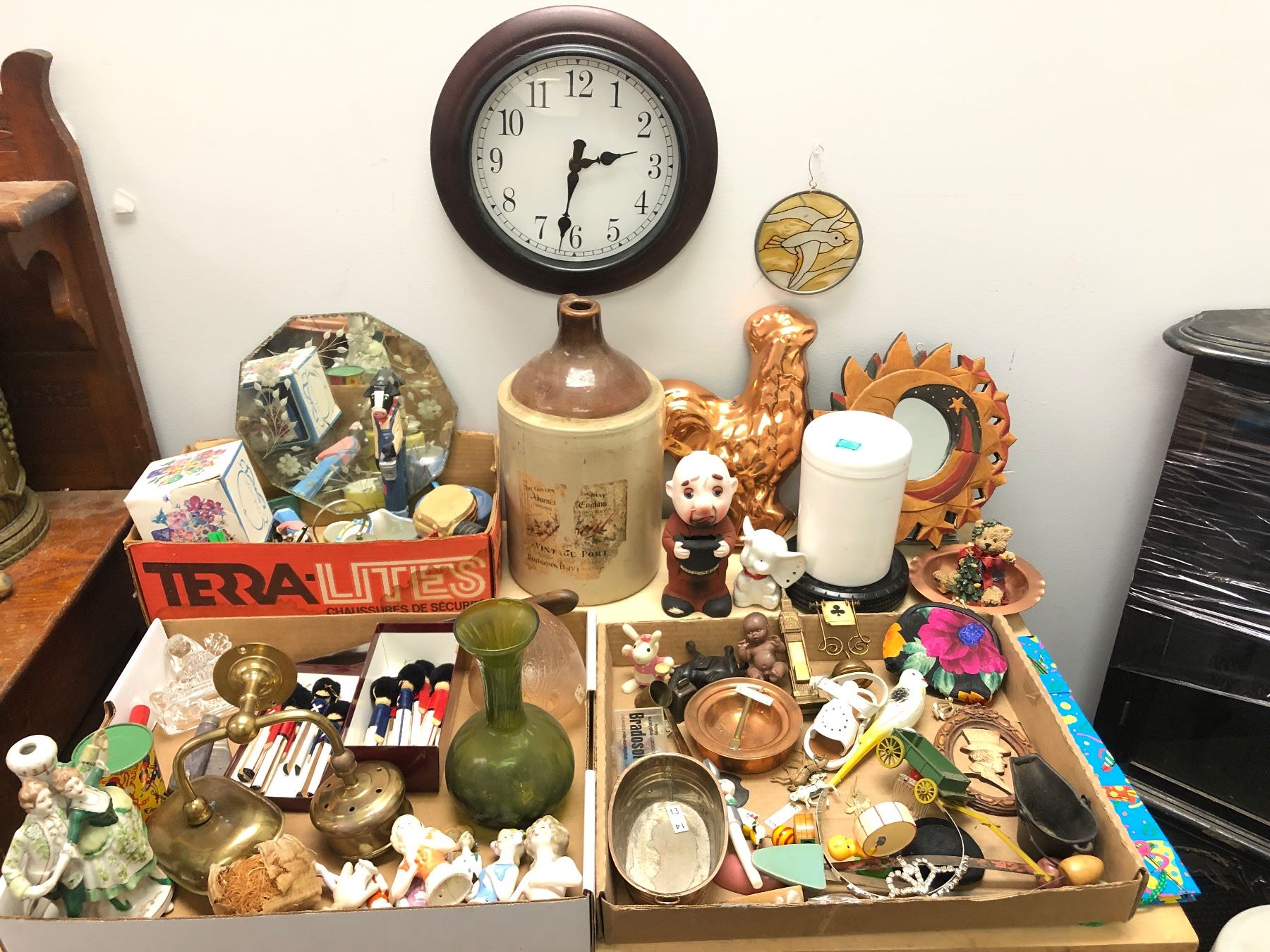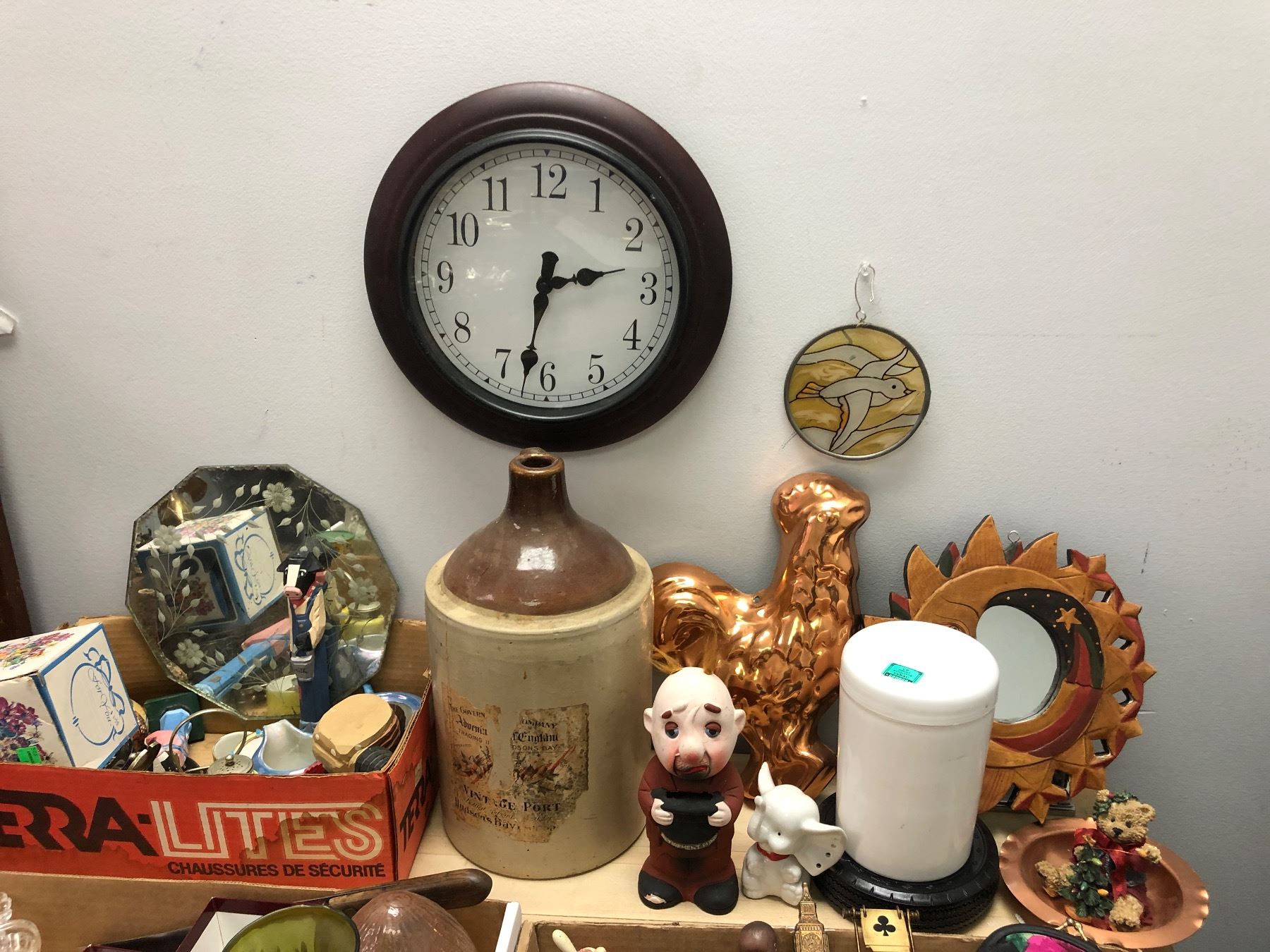 Group of assorted vintage estate decorative items - includes wall clock / figurines / retirement fund burn figurine etc - approx 60 pcs