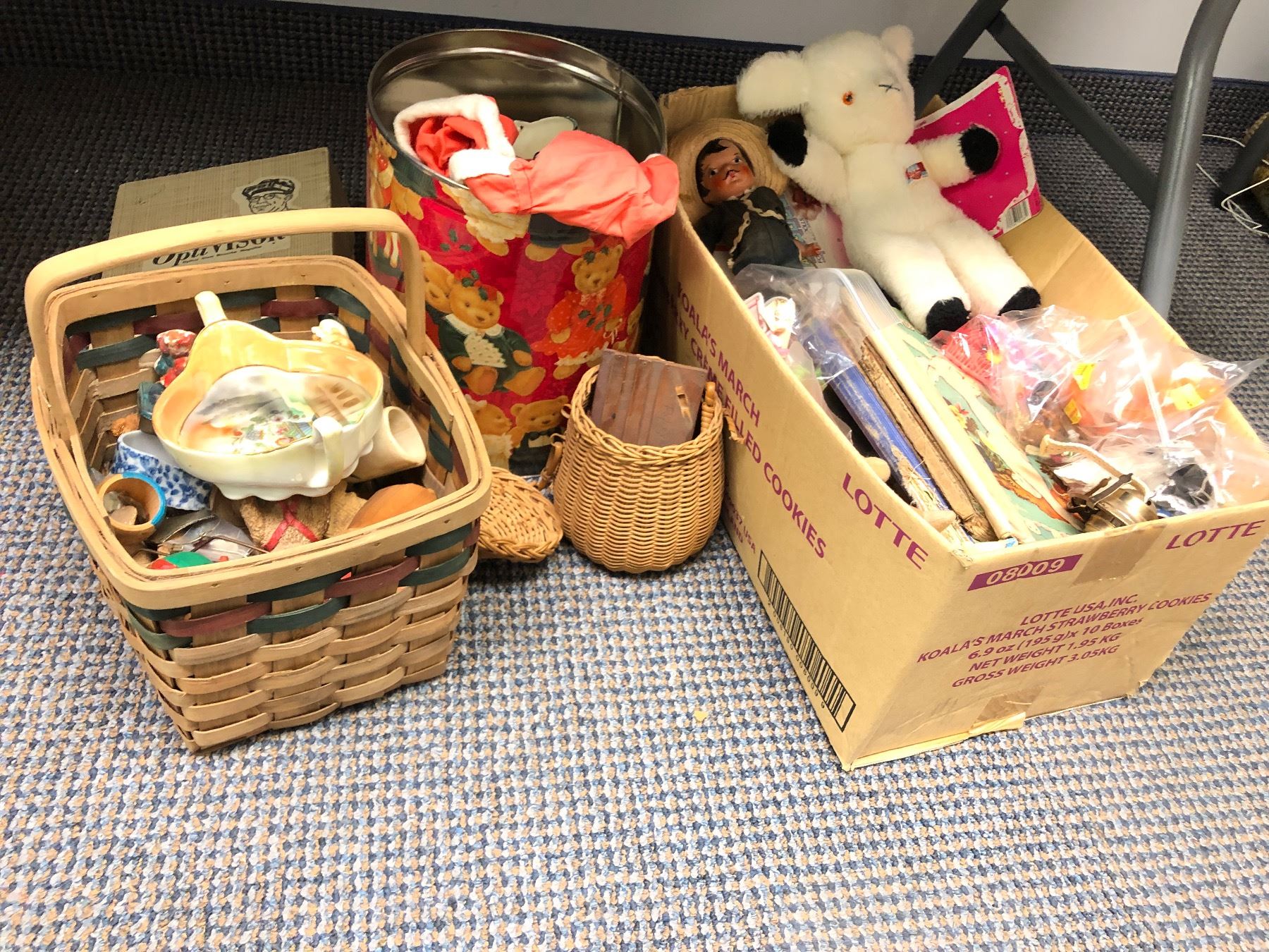 Group of assorted vintage estate items - includes Opti Visor (in box) / Mexican porcelain doll / bear figurines etc