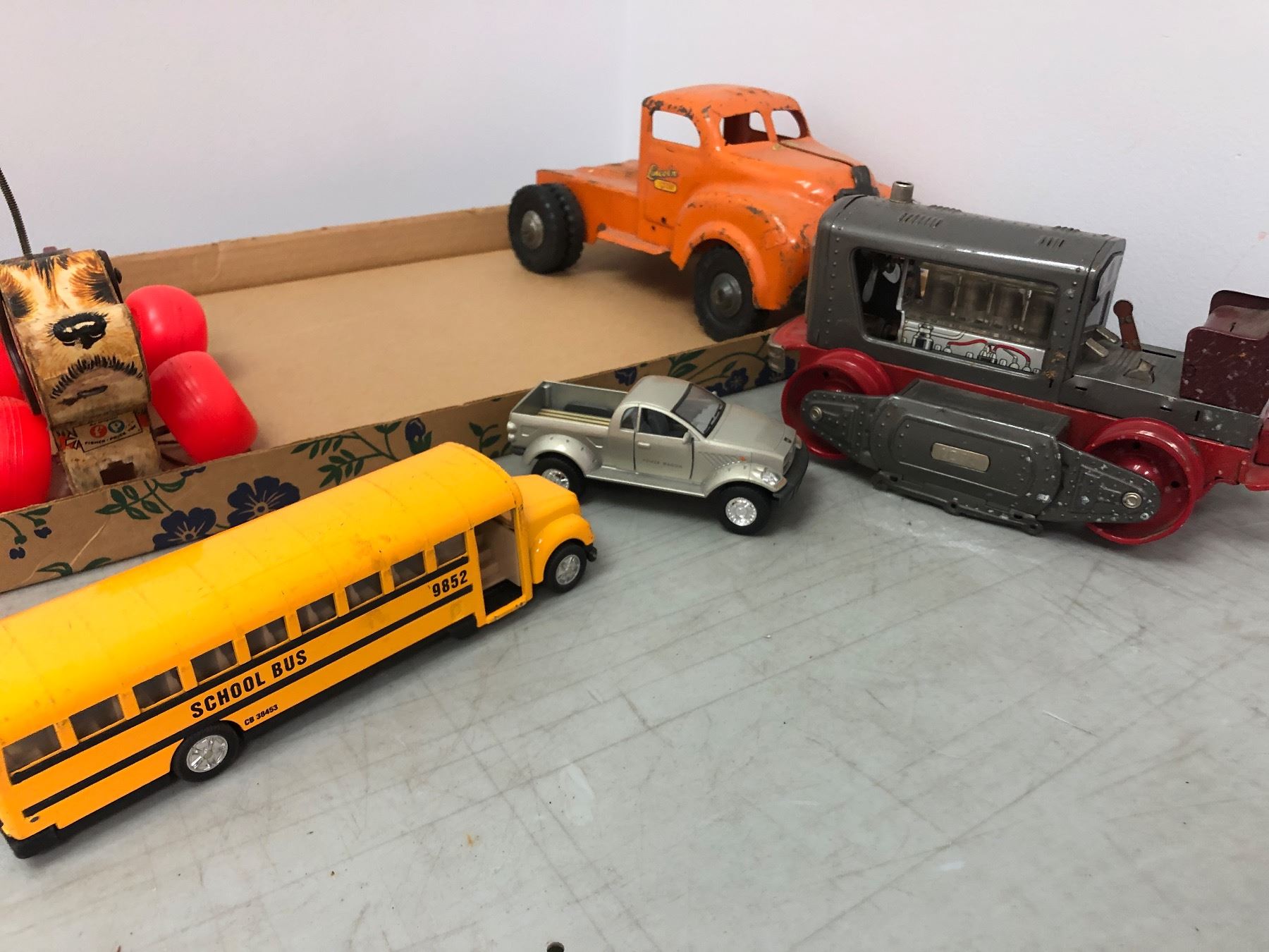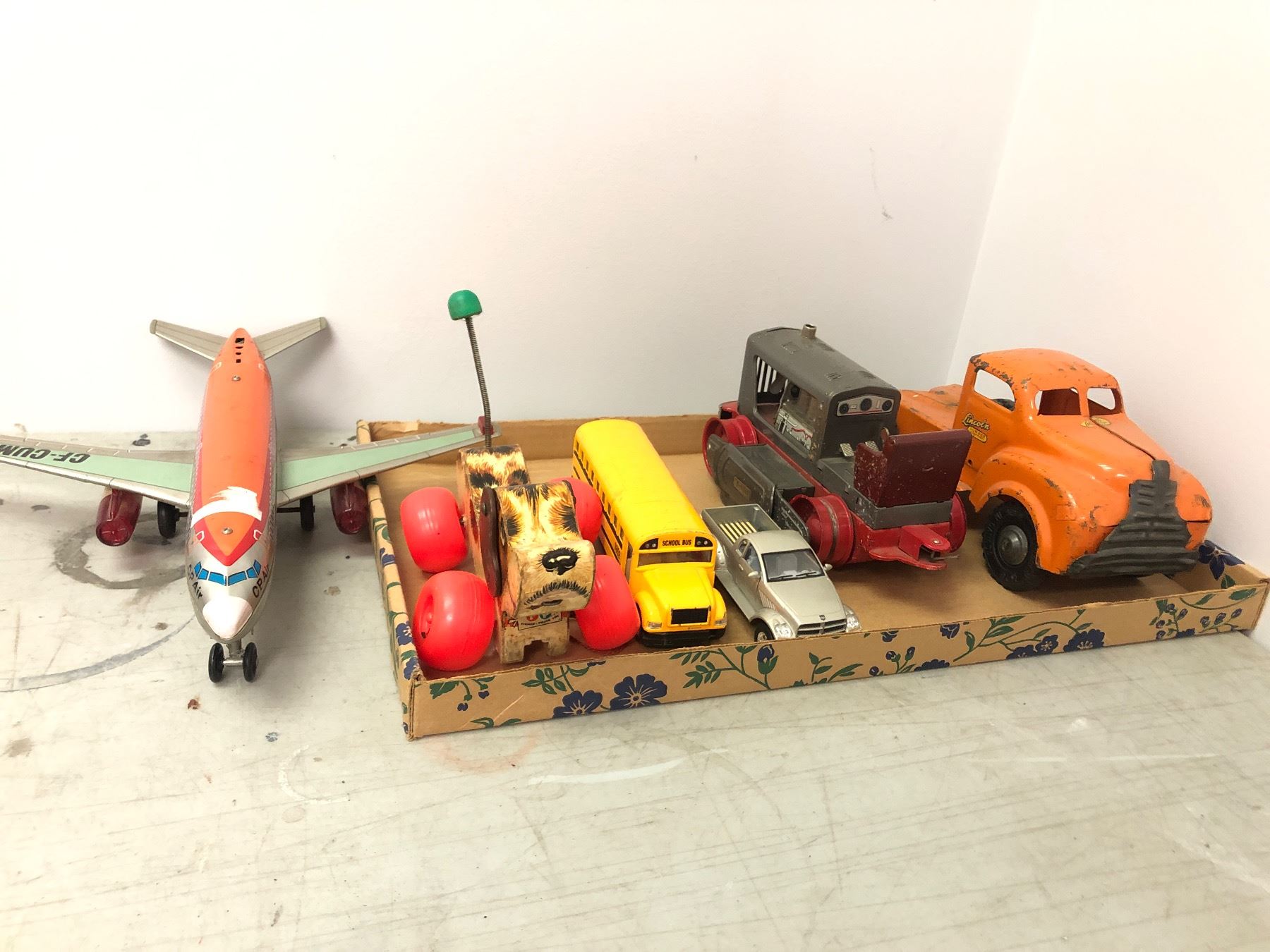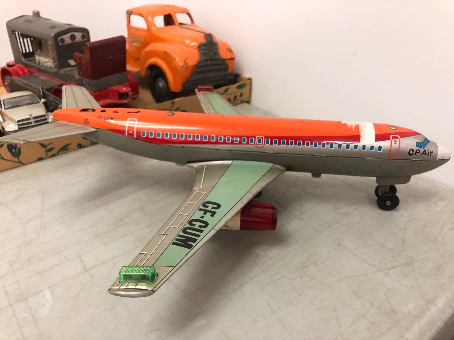 Group of assorted vintage estate toys - includes vintage CP-Air toy plane (cf-cum) / toy piston / lil snoopy on wheels etc