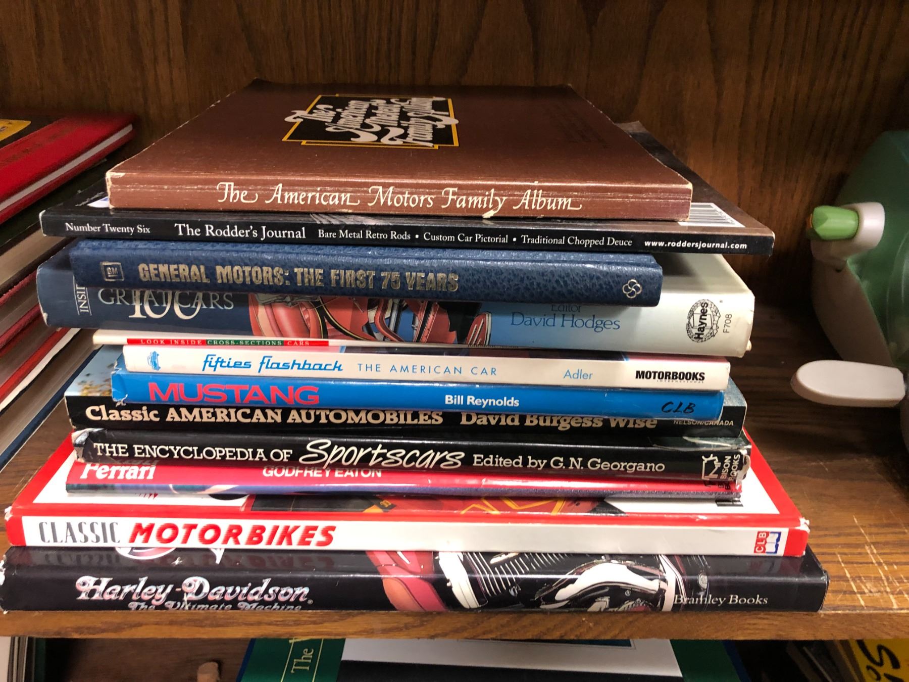 Group of cars books - Mustang/ Harley Davidson The Ultimate Machine etc.