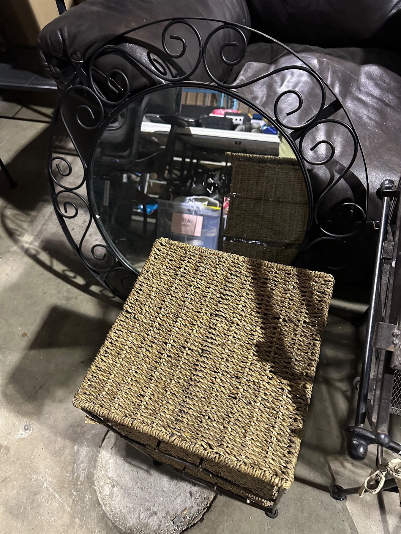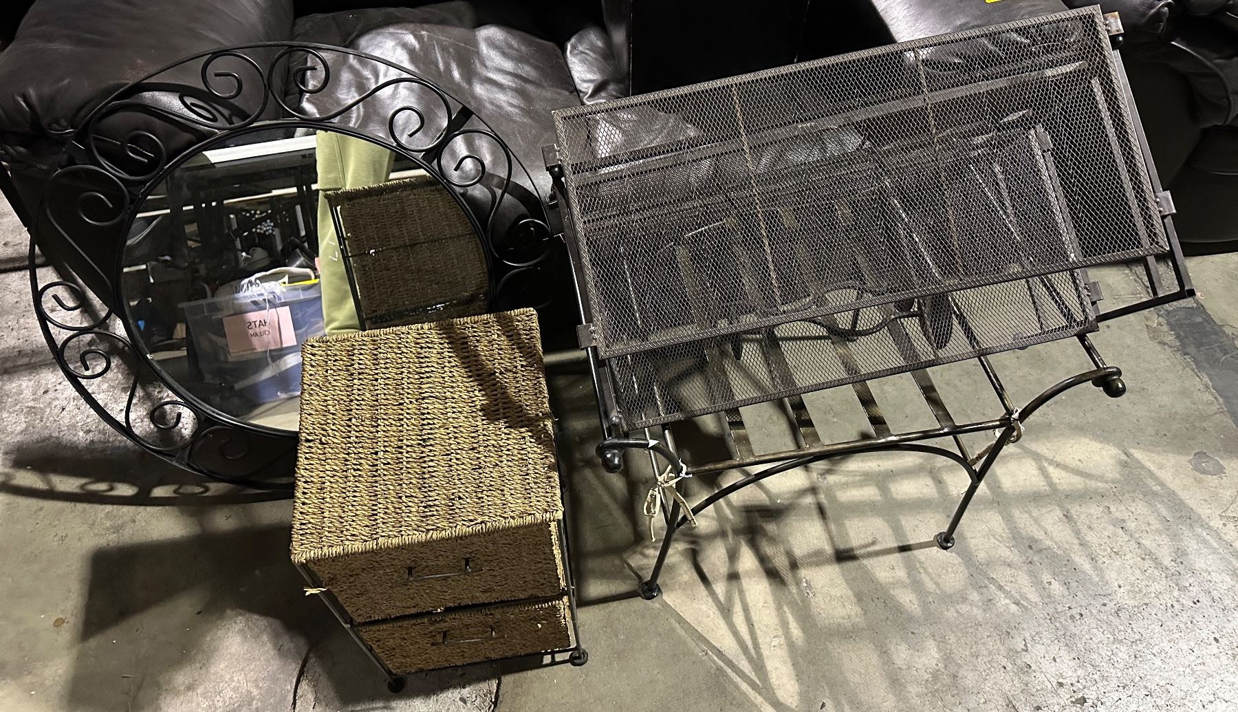 Group of circle mirror, standing storage basket, shoe holder, etc...
