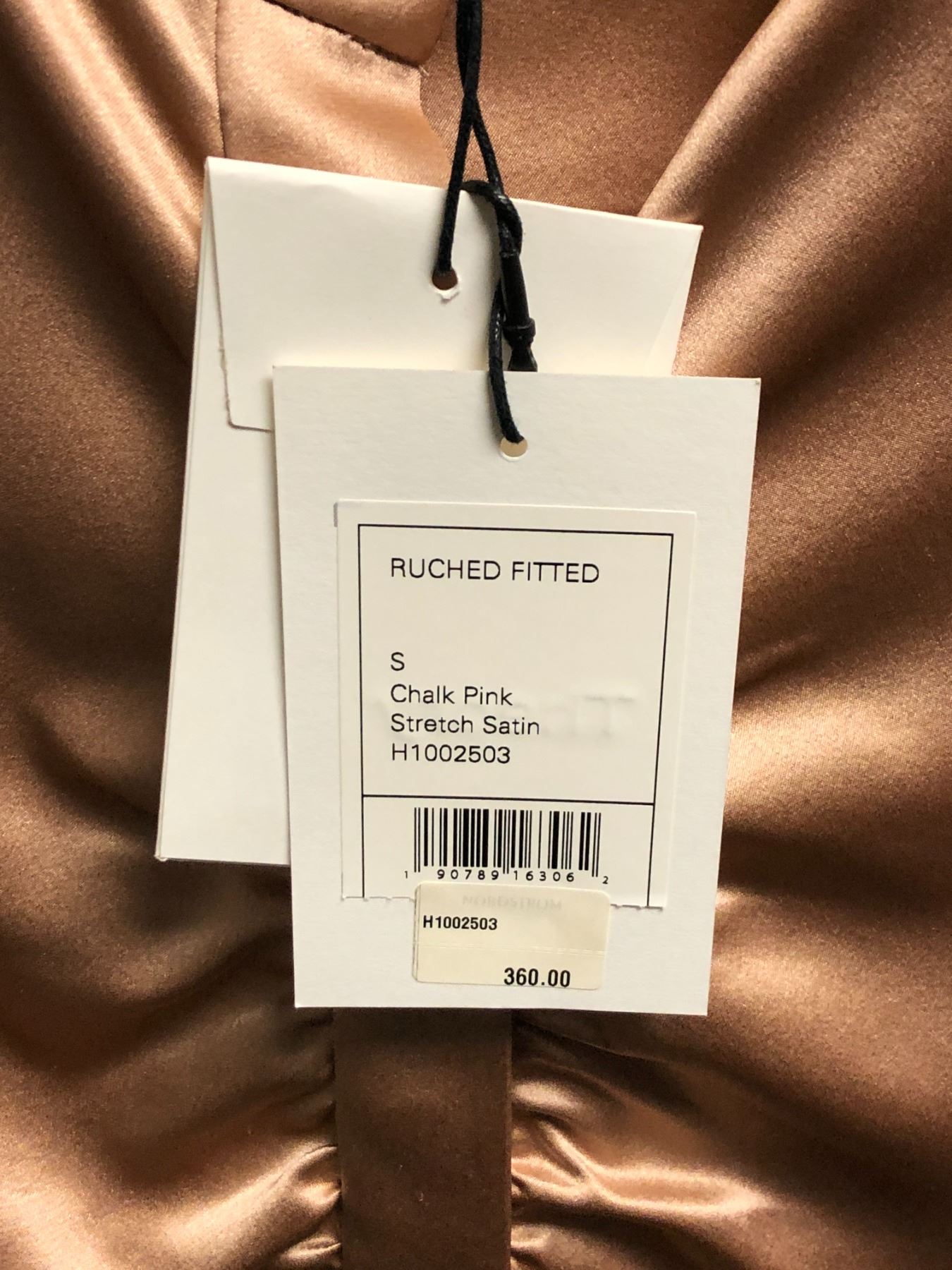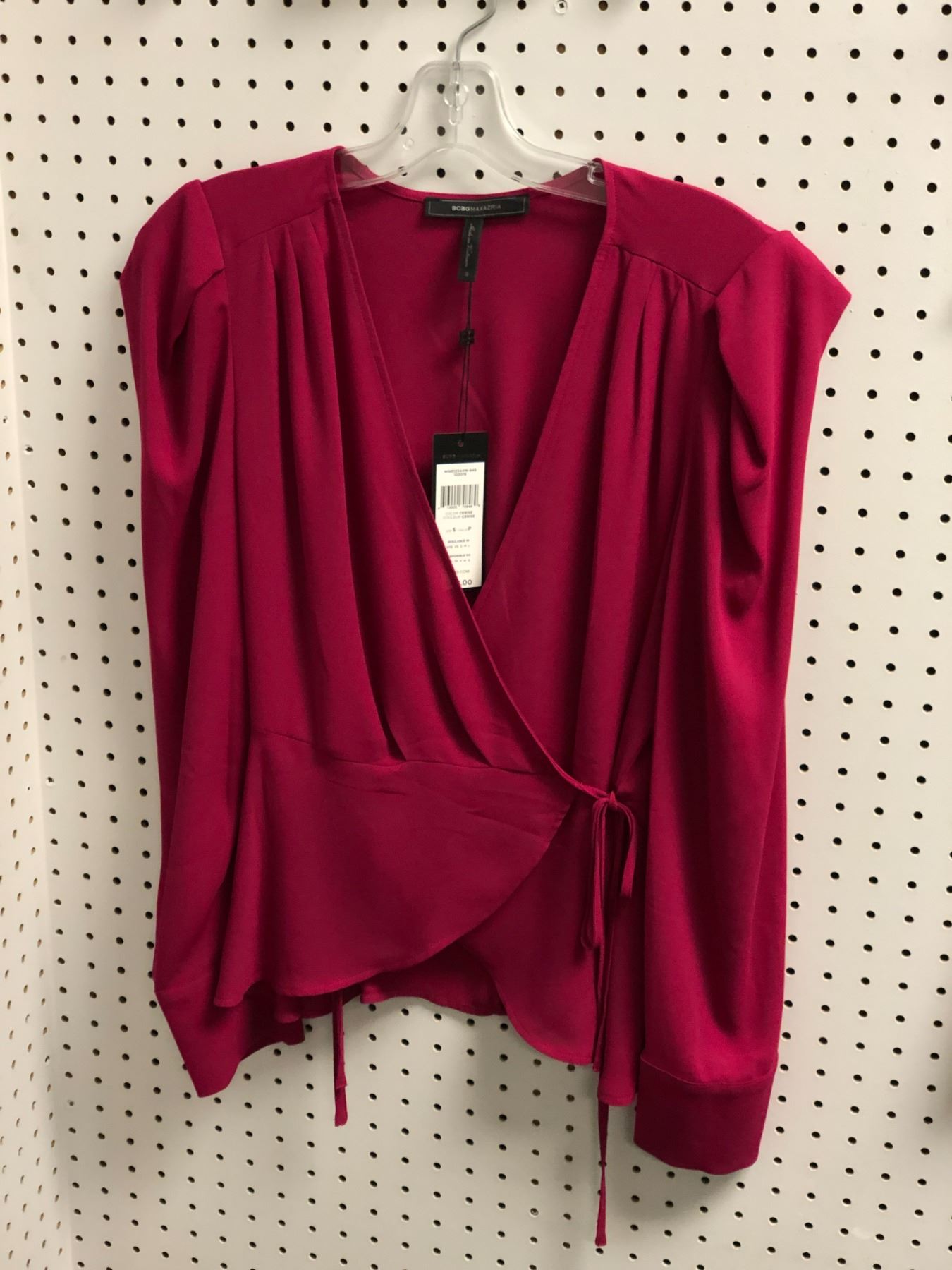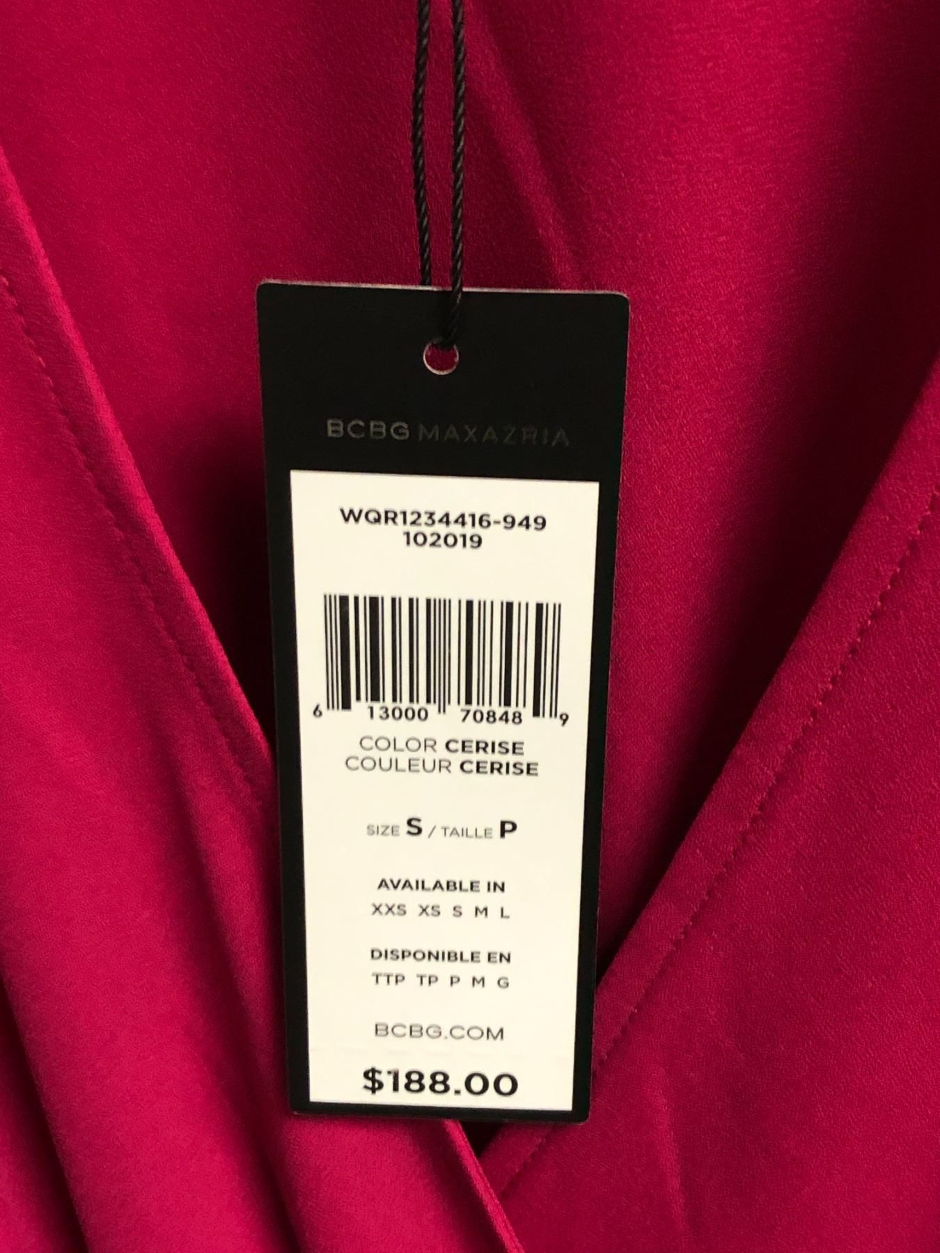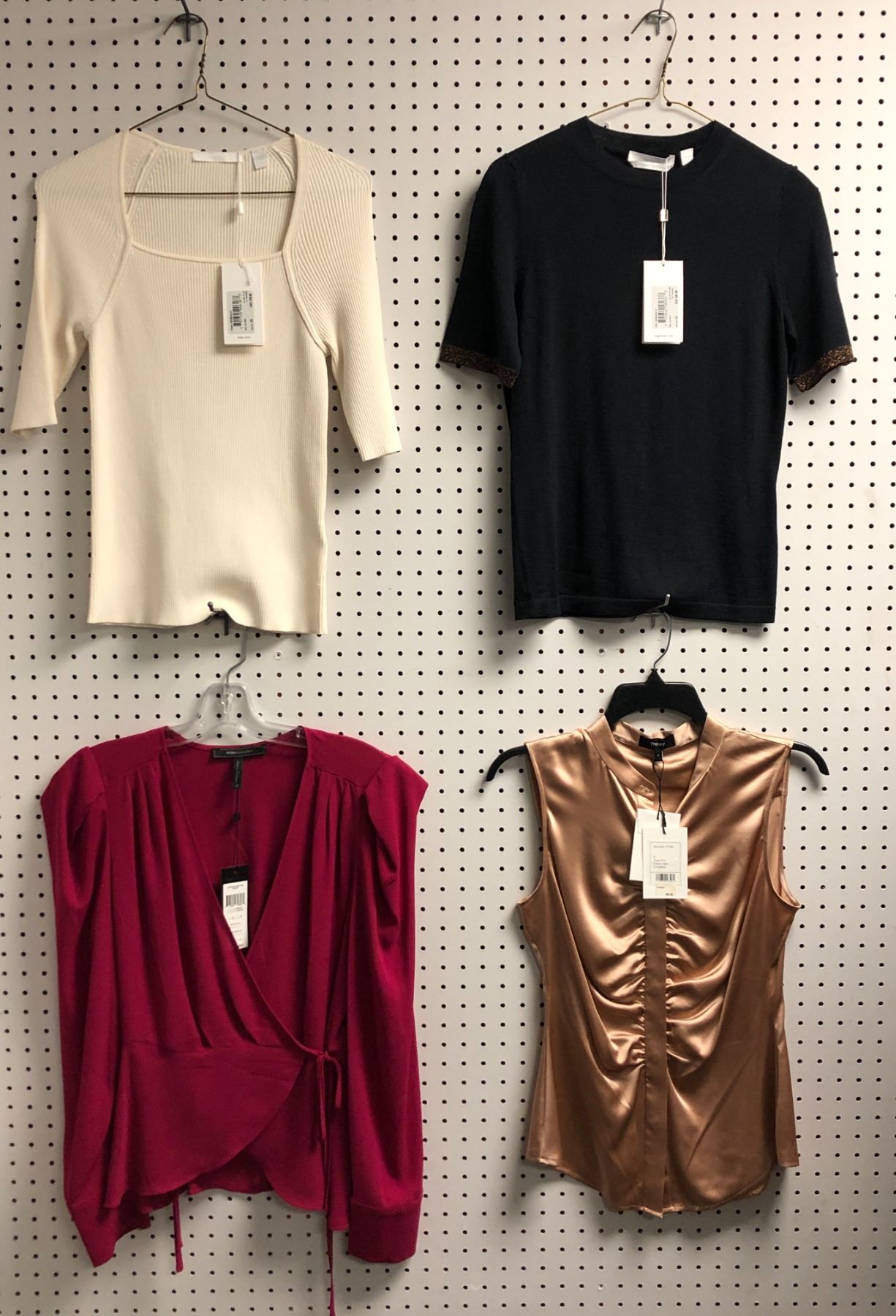 Group of designer clothing pieces (new w/ tags) - "Theory" ruched fitted chalk pink top (Size: S)/ "BCBG Maxazria" red top (Size: S) & "Hugo Boss "group of 2 women's sweaters - Size: XS