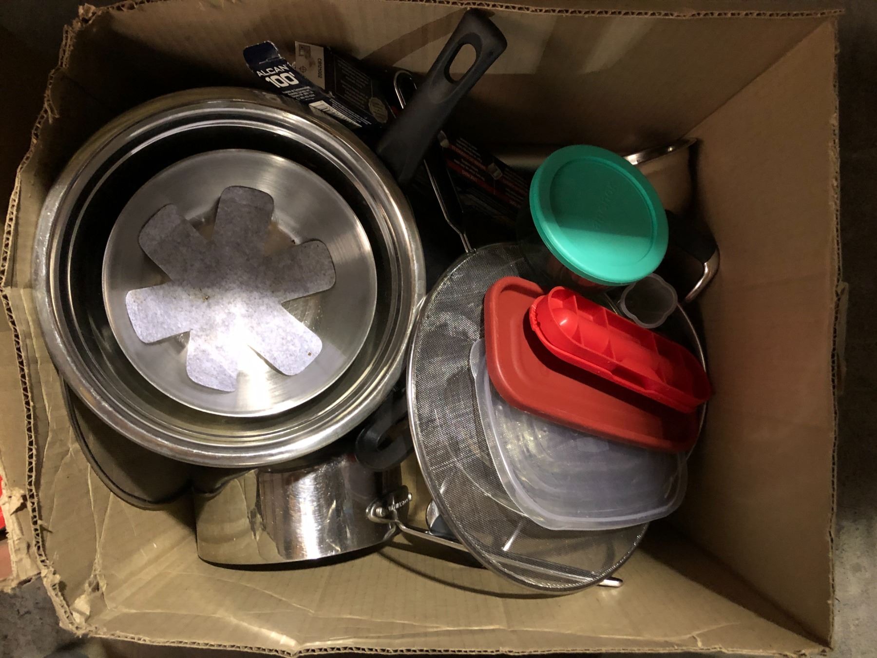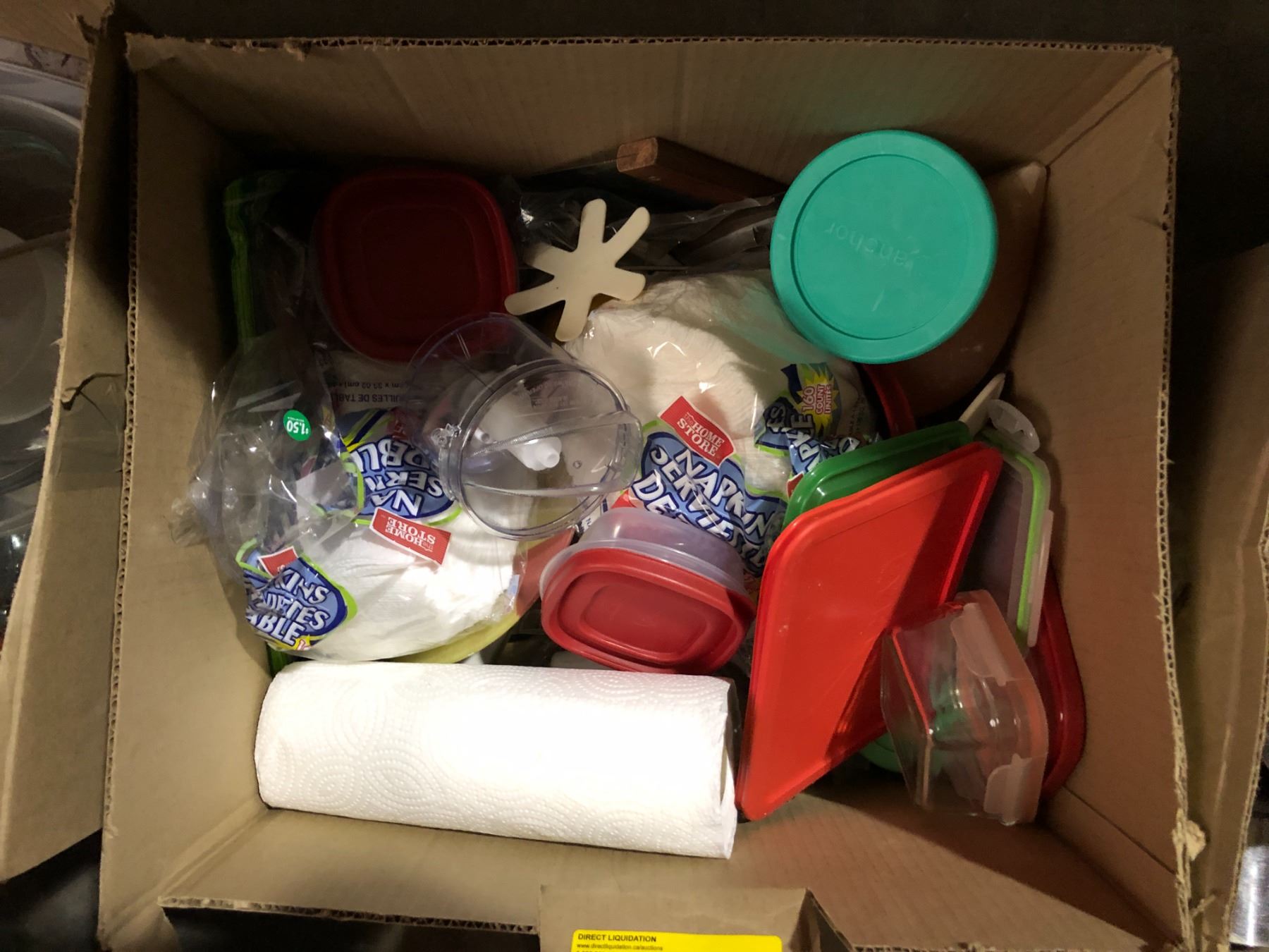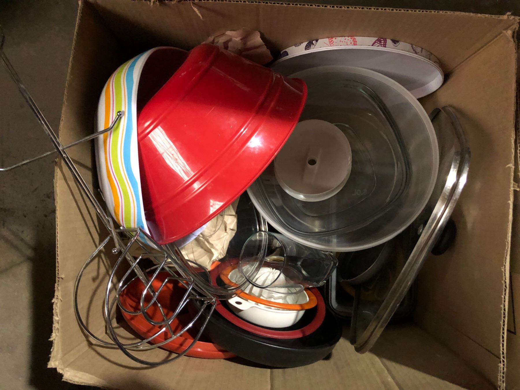 Group of misc household kitchen items including - Tupperware, bowls, cooking trays, etc...