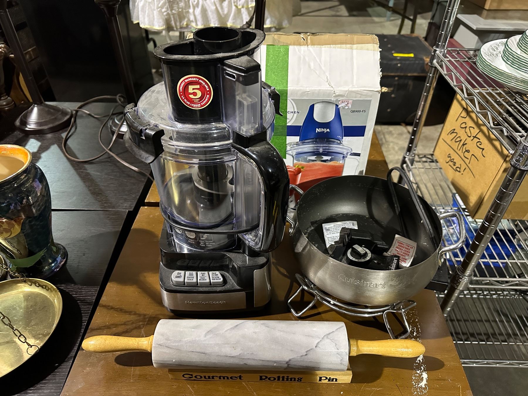 Group of misc. items including - rolling pin, Hamilton Beach blender, Ninja food & drink maker, Cuisinart portable cooker, etc...