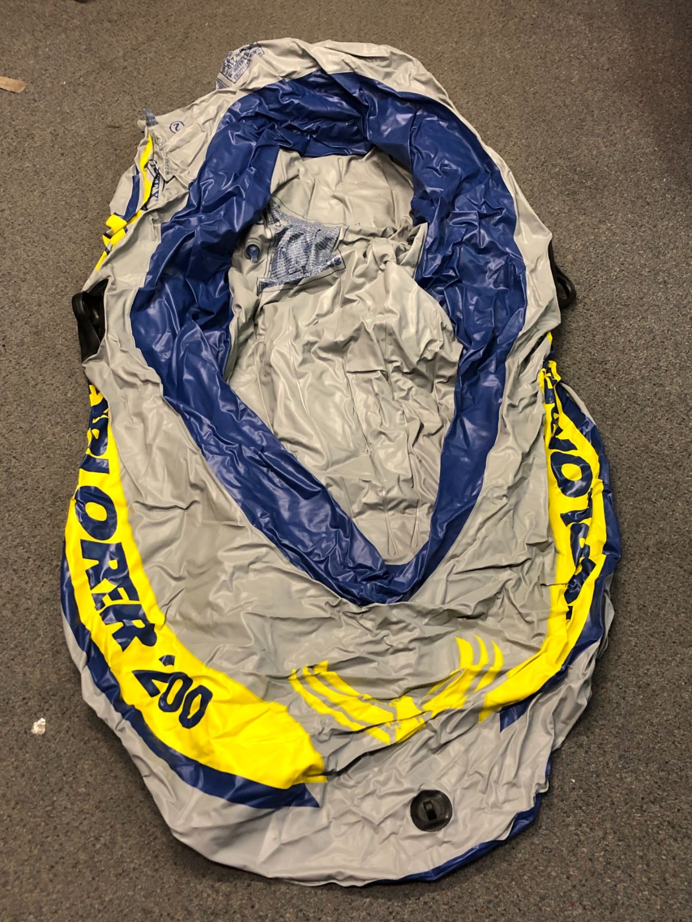 Group of misc items including - yoga mats, coleman cooler, inflatable rafts, blow up bed, etc...