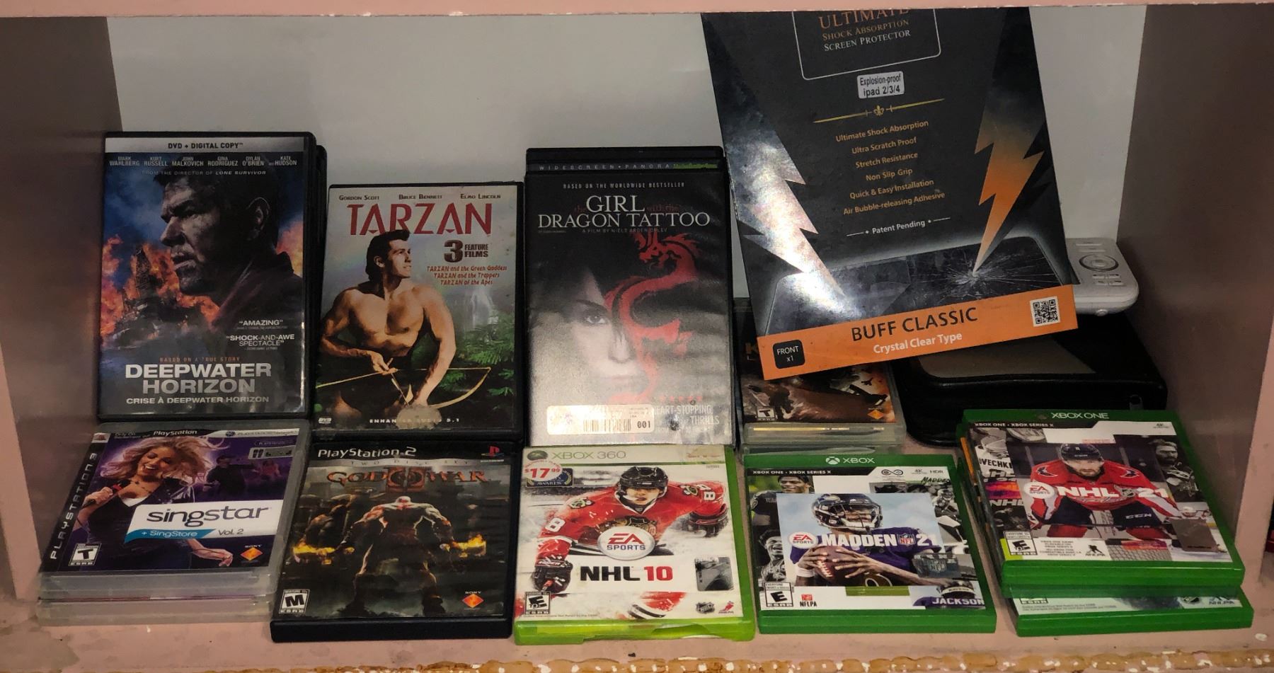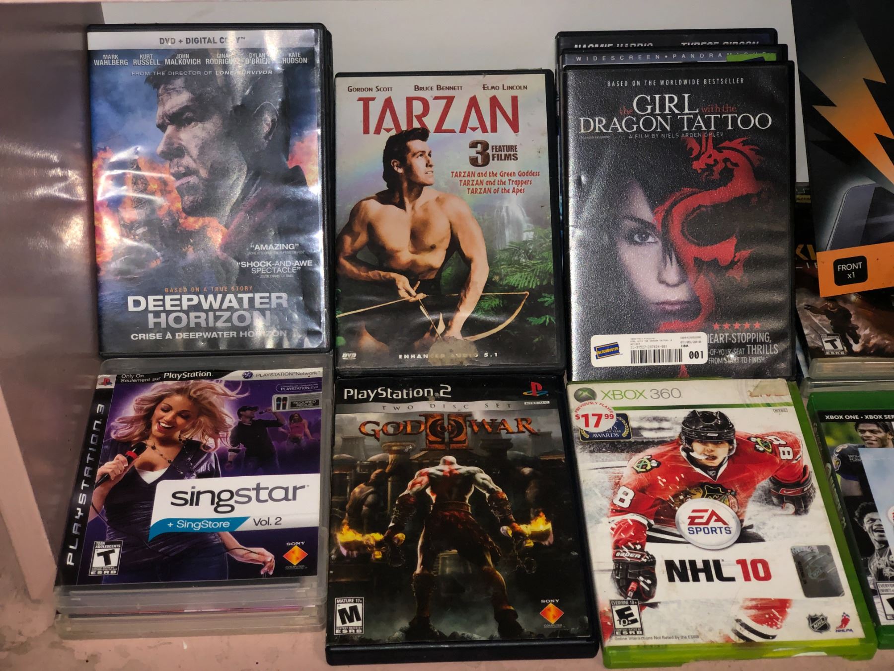 Group of misc video games & DVDs including - NHL, Tarzan, Deepwater horizon, Madden, etc...
