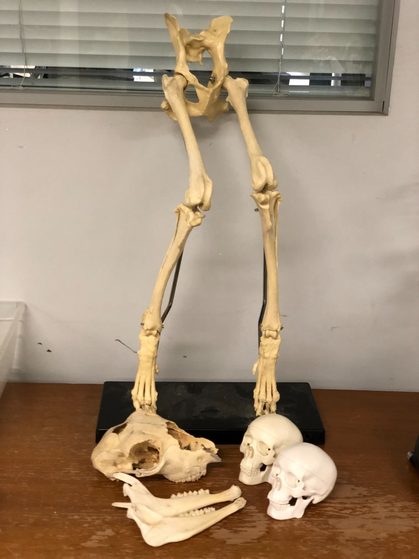Group of special effect industry bones - 2 resin composite baby skulls/ resin composite animal legs & real goat skull