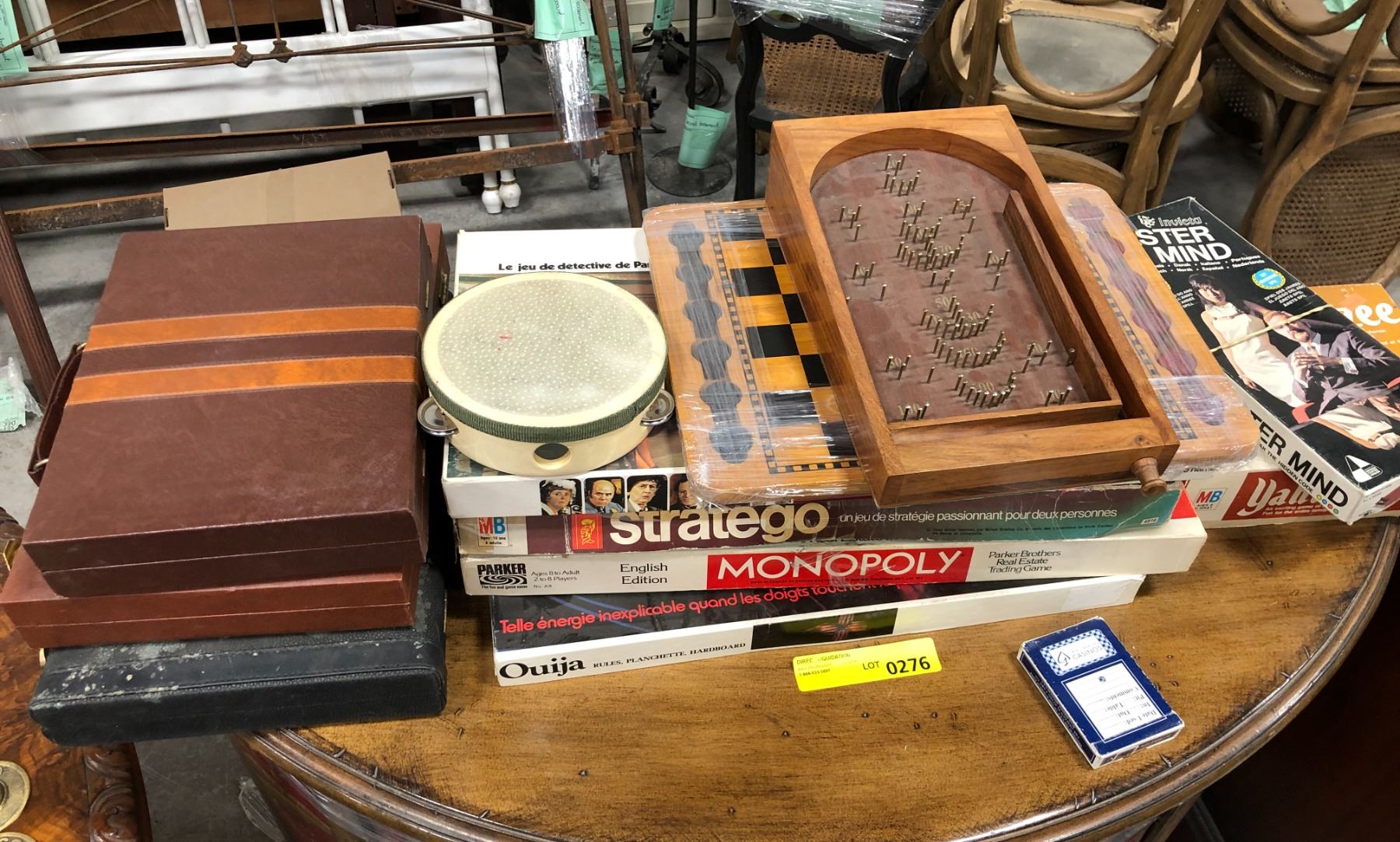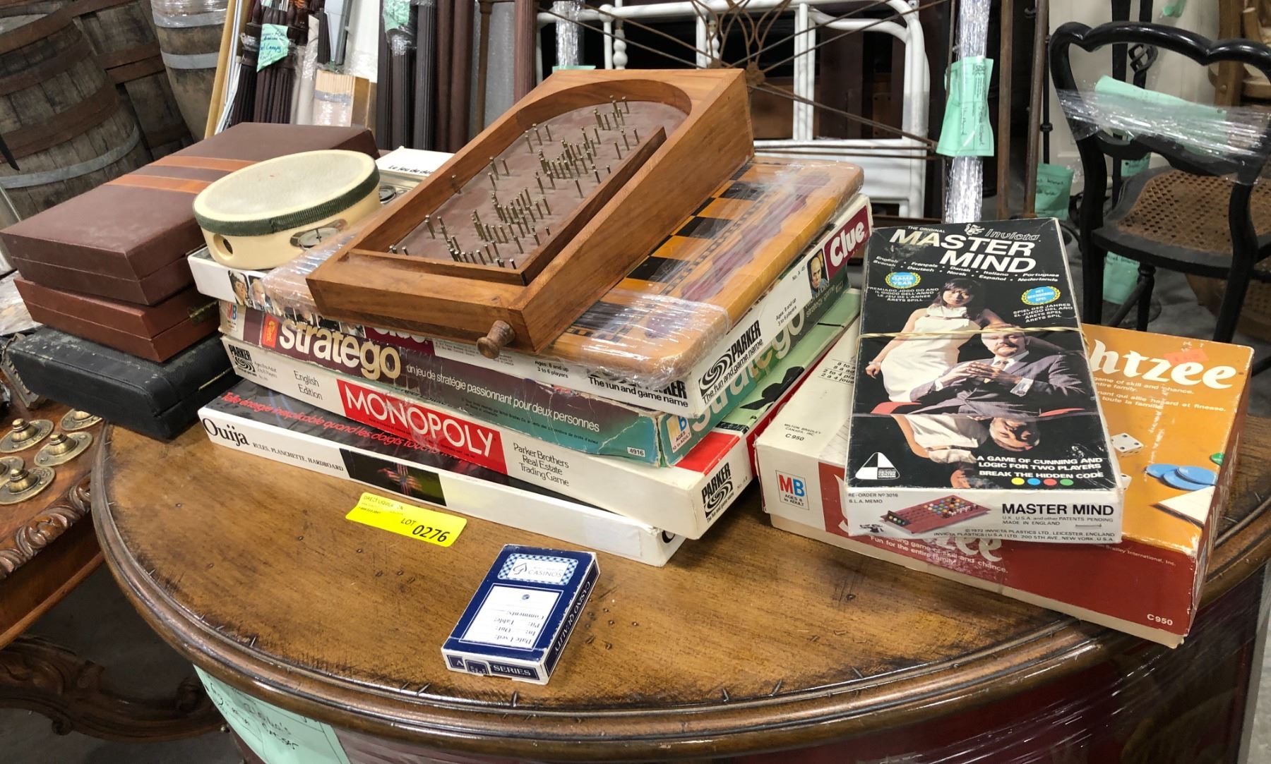 Group of vintage games - includes / checkers / clue / monopoly / ouija / bagatelle etc