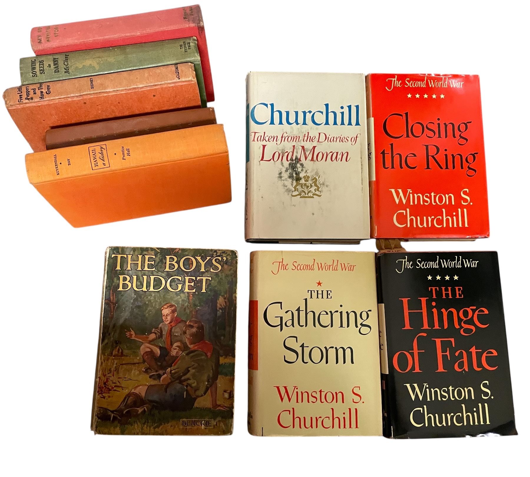 Group - (x2) Boxes of Misc. Books including Winston Churchill, stories, collegiate, etc.