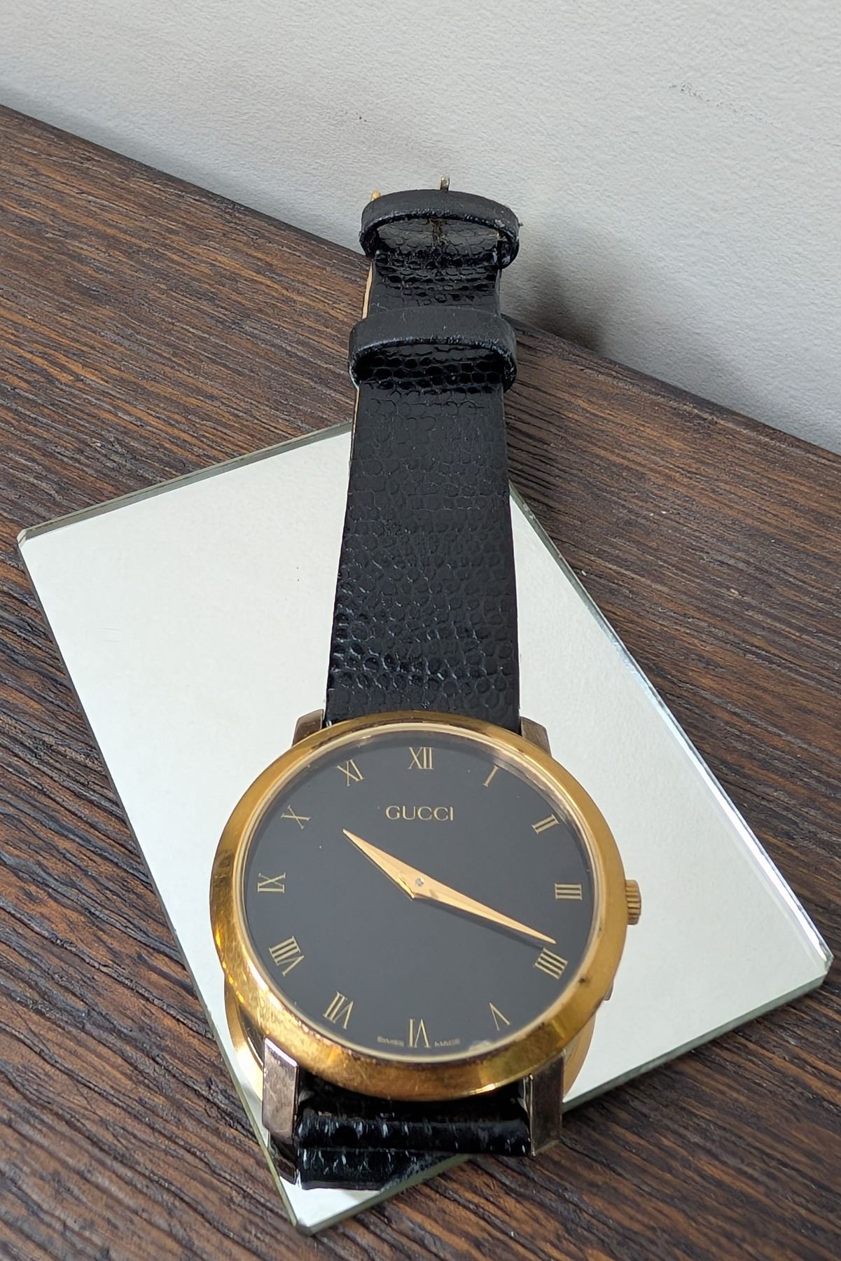 Gucci 2200M watch black leather strap