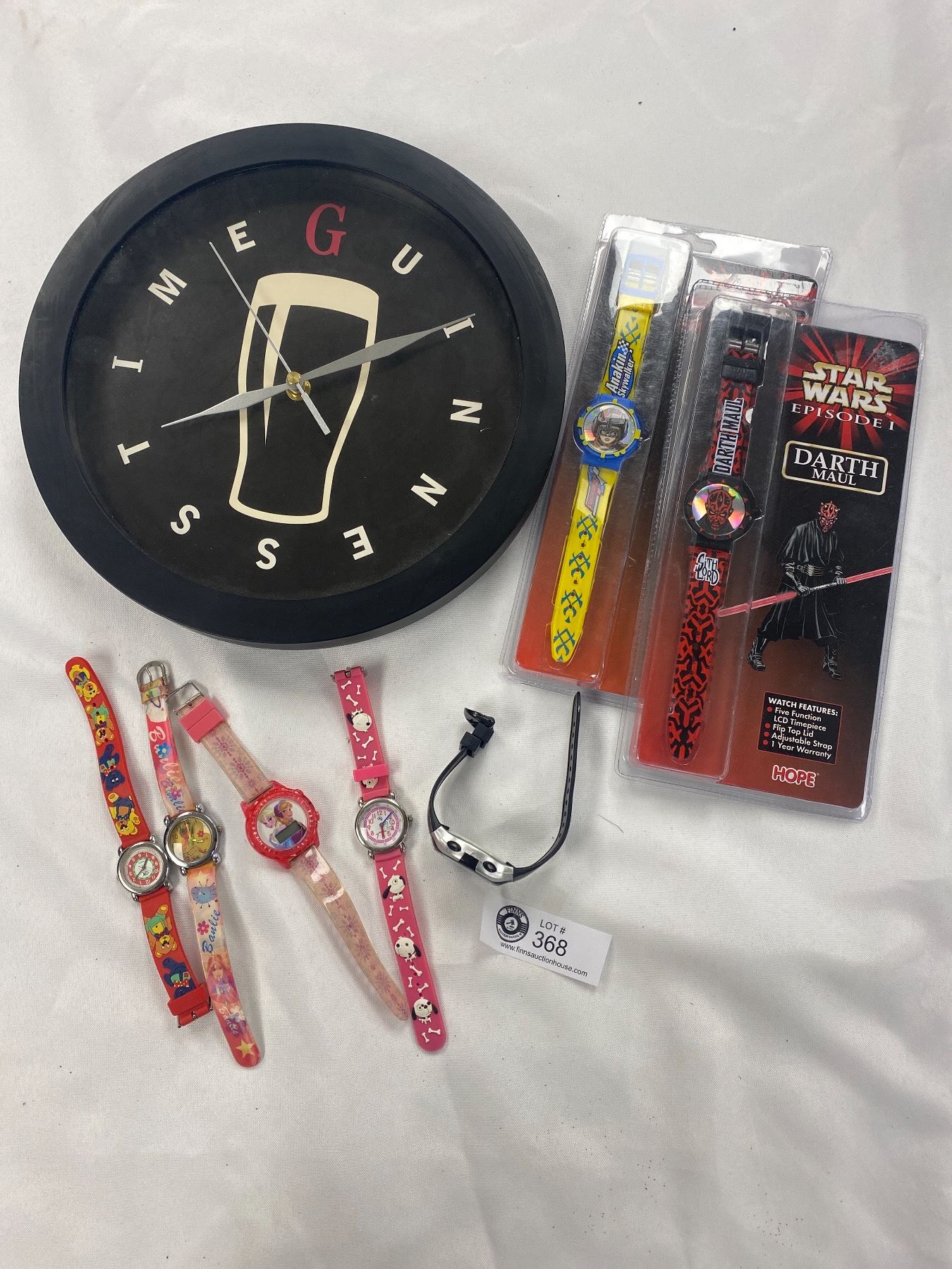 Guinness Wall Clock with Collectible Watch Lot, 2 Star Wars Watches Brand New In Original Packaging