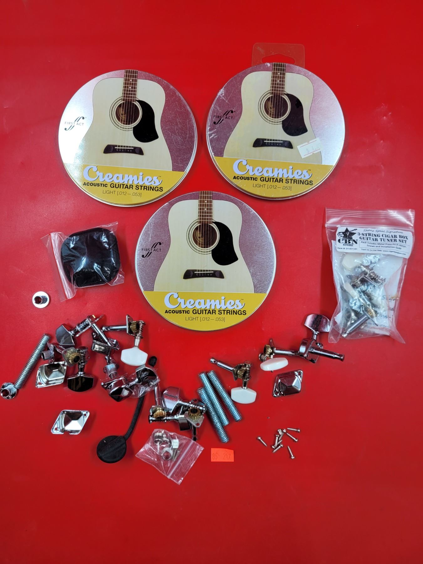 Guitar Accessory Lot w/ Acoustic Guitar Strings, Guitar Tuner Set, & More