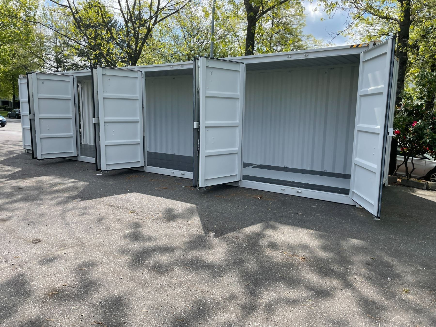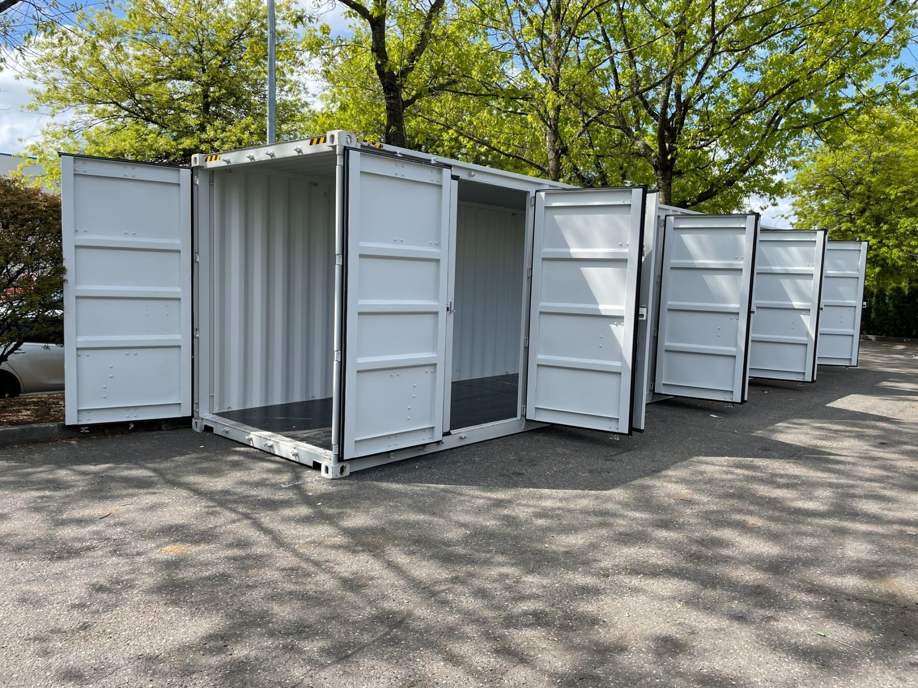 *H/T S* GREY 40' 52,910 MAX CAPACITY INDUSTRIAL TRANSPORT CONTAINER WITH 4 DUAL SWING SIDE DOORS,
