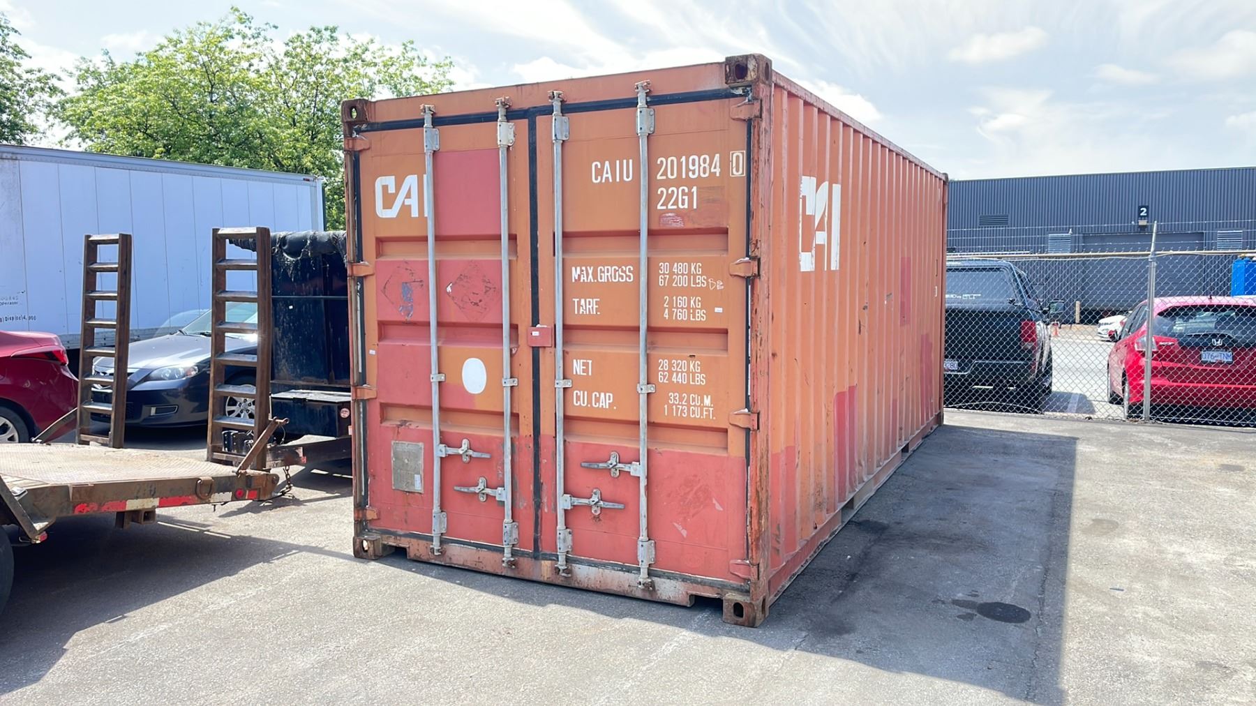 *H/T S* RED 20FT 67,200 MAX CAPACITY INDUSTRIAL TRANSPORT CONTAINER, DUAL SWING REAR DOORS *REQUIRES HIAB CRANE OR TILT DECK TRAILER TO TRANSPORT LAST DAY* CAIU2019840