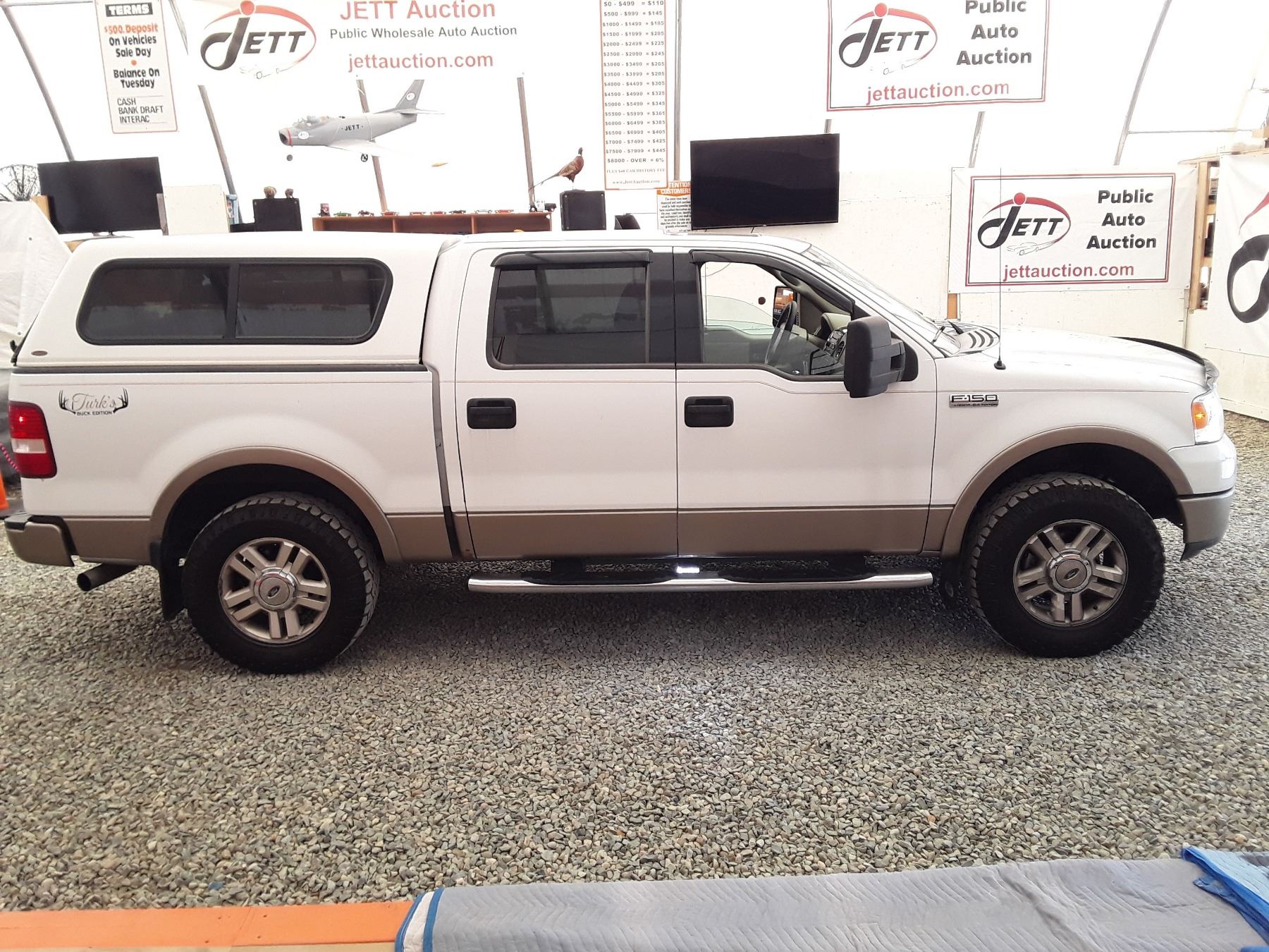 Automatic transmission and 5.4 Litre Engine, 8 cylinder , Four Wheel Drive, 373266 KilometersWhite, 5 PassengerDeclarations - , Damage Claims, 6 CLAIMS + 1 GLASS TOTAL $17970 , Ex Lease, Power Steering, Power Brakes,, Intermittent Wipers, Dual Air Bag, AM/FM Stereo , Rear Defroster, Bucket Seats, Anti Lock Brakes, Front Disc Brakes-Air Conditioning, Power Windows, Power Locks, Keyless Entry, Tilt Steering, Cruise Control, Alloy Wheels, Anti Theft, Power Sunroof, CD Player, Leather Seats, Power Seats, Heated Seats, Memory Seats, Heated Mirrors, Information Center, Parking Sensors, Steering Wheel Controls, Power Adjustable Pedals, Canopy, Box Liner, Running Boards, Short Box, Auction Notes : Carfax Shows Spark Plugs, Valve Cover Gaskets, Transfer Case Seal + Transmission Rebuilt @302,982kms Chip/Crack Windshield