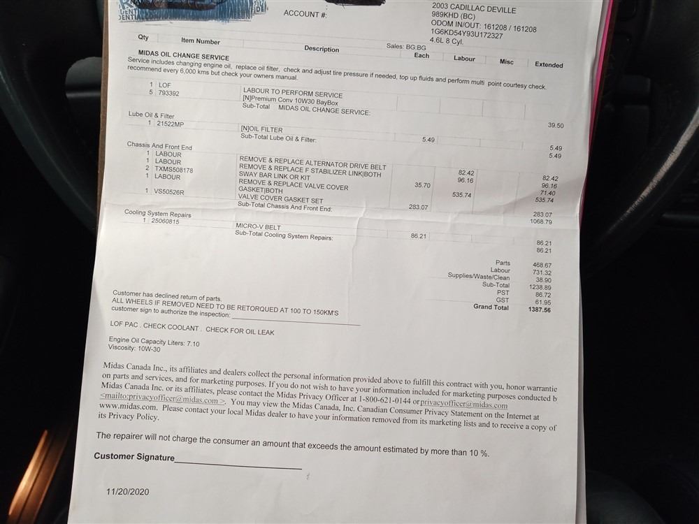 Automatic transmission and NORTHSTAR 4.6 Litre Engine, 8 Cylinder, Front Wheel Drive, 180237 KMBlue, 6 PassengerDeclarations - , Damage Claims, 4 CLAIMS+ 1 GLASS TOTAL $3820 , Power Steering, Power Brakes, Intermittent Wipers, Dual Air Bag, AM/FM Stereo , Rear Defroster, Bucket Seats, Anti Lock Brakes, Front Disc Brakes-Air Conditioning, Power Windows, Power Locks, Keyless Entry, Tilt Steering, Cruise Control, Alloy Wheels, Anti Theft, CD Player, Leather Seats, Power Seats, Heated Seats, Memory Seats, Heated Mirrors, Information Center, Traction Control, Rear Heat and Air, Steering Wheel Controls, Power Mirrors Auction Notes : Rear Heated Seats Dual Exhaust, The Following Work Done @161208km: Drive Belts Replaced, Sway Bar Links Replaced, Valve Cover Gasket, Comes With Receipts, See Pictures