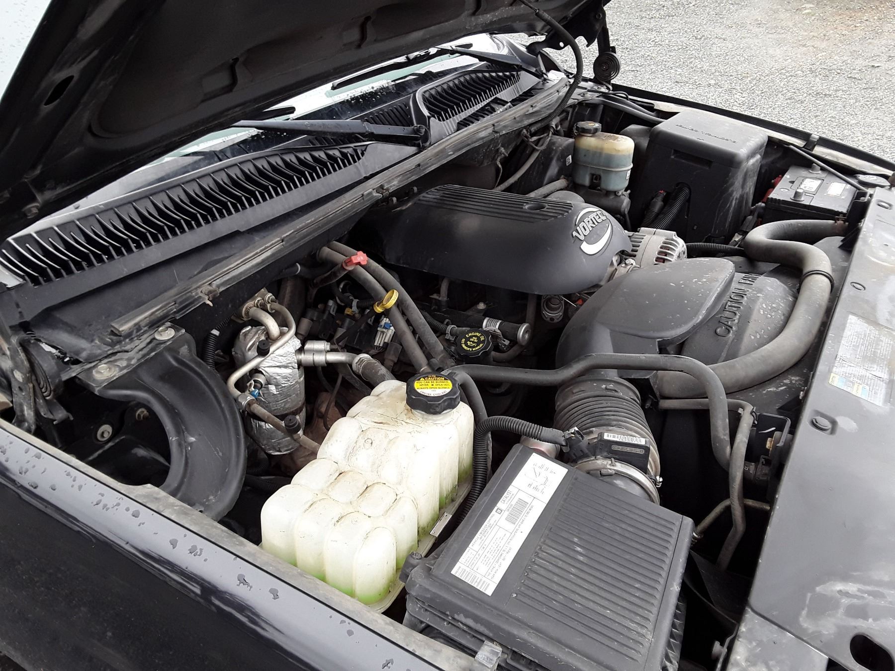 Automatic transmission and VORTEC 5.3 Litre Engine,8 cylinder , Four Wheel Drive, 313988 KilometersBlack ,5 PassengerDeclarations -, Damage Claims, 1 CLAIM + 2 GLASS TOTAL $5200 , , Intermittent Wipers, Dual Air Bag, AM/FM Stereo , Rear Defroster, Bucket Seats, Anti Lock Brake, Front Disc Brakes-Air Conditioning, Power Windows, Power Locks, Keyless Entry, Tilt Steering, Cruise Control, Alloy Wheels, Anti Theft, CD Player, Leather Seats, Power Seats, Heated Seats, Information Center, Rear Heat and Air, Fog Lights, Box Liner, Tow Package, Trailer Brake Controller, Short BoxAuction Notes : , Chip or Crack in Windshield