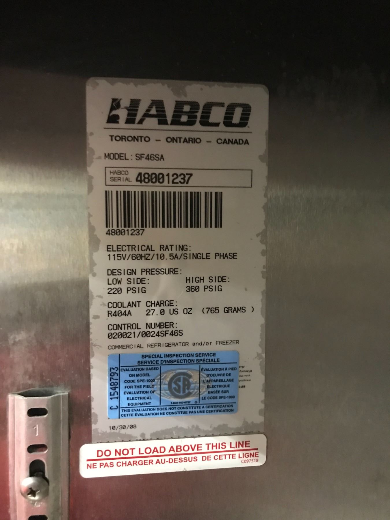 HABCO SF-46SA, DOUBLE DOOR STAINLESS STEEL, 4 TIER COMMERCIAL FREEZER. MOBILE.