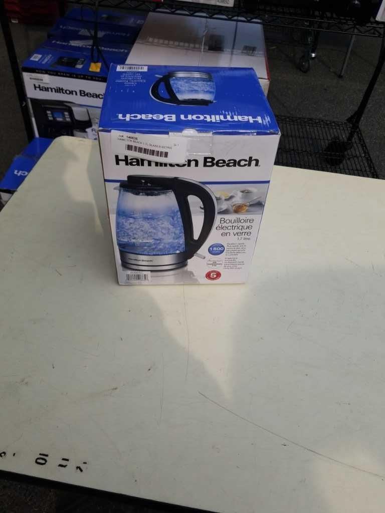 HAMILTON BEACH 1.7L GLASS ELECTRIC KETTLE TESTED AND WORKING - RETAIL $64