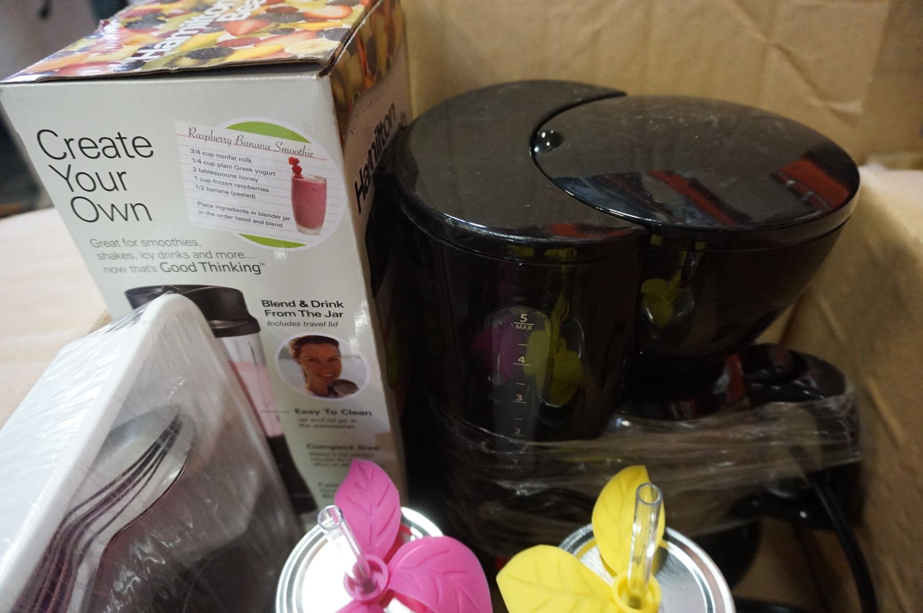HAMILTON BEACH BLENDER, COFFEE POT AND GLASSES