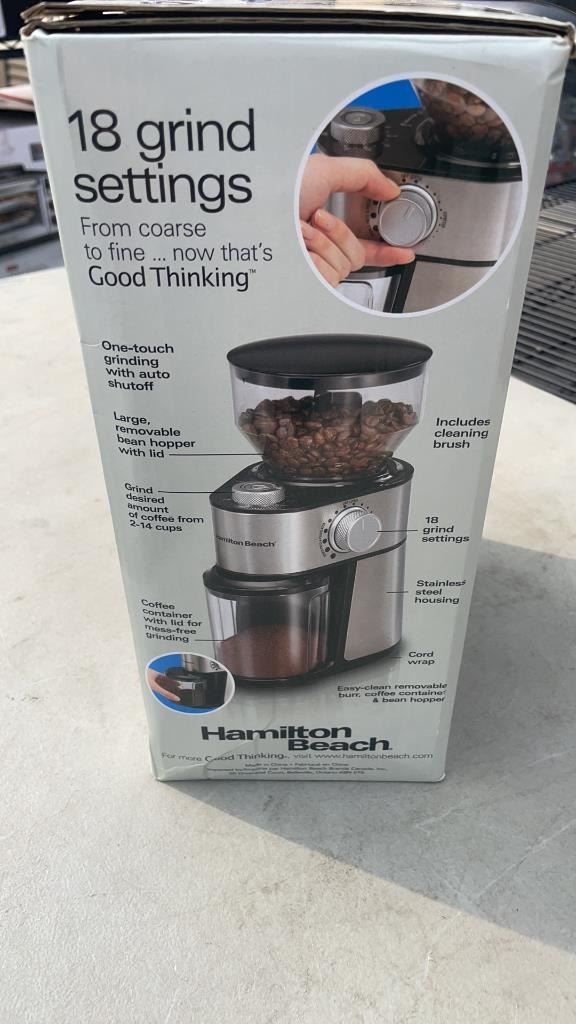 HAMILTON BEACH BURR COFFEE GRINDER TESTED AND WORKING - RETAIL $84