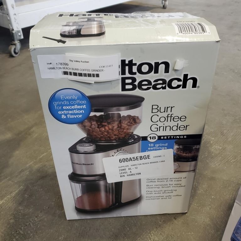 HAMILTON BEACH BURR COFFEE GRINDER - TESTED WORKING, RETAIL $54