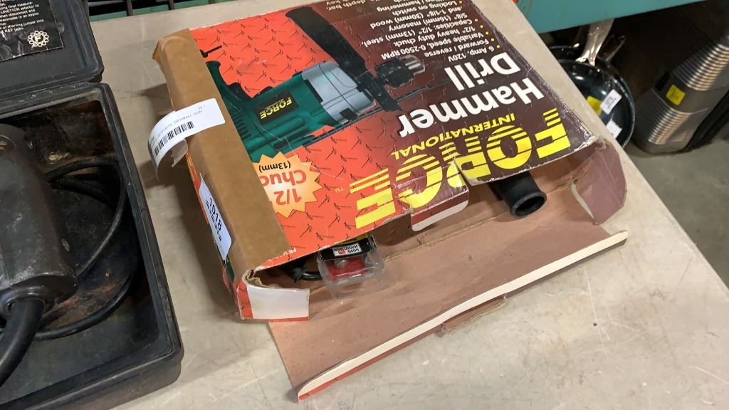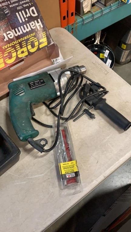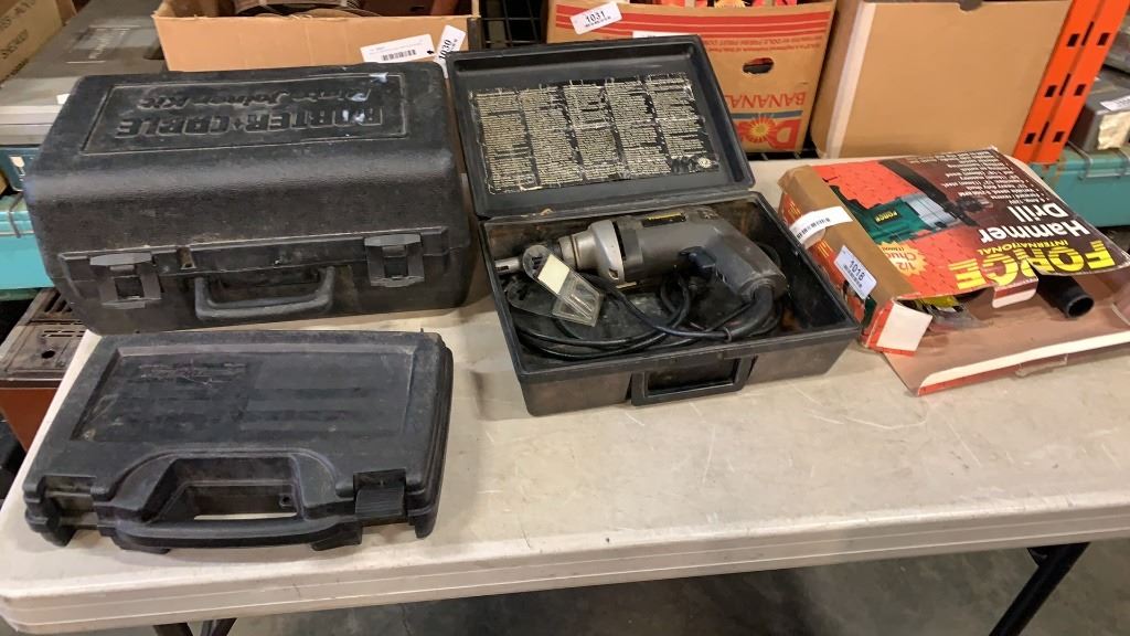 HAMMER DRILL WITH BITS, DRYWALL GUN AND 2 TOOL CASES