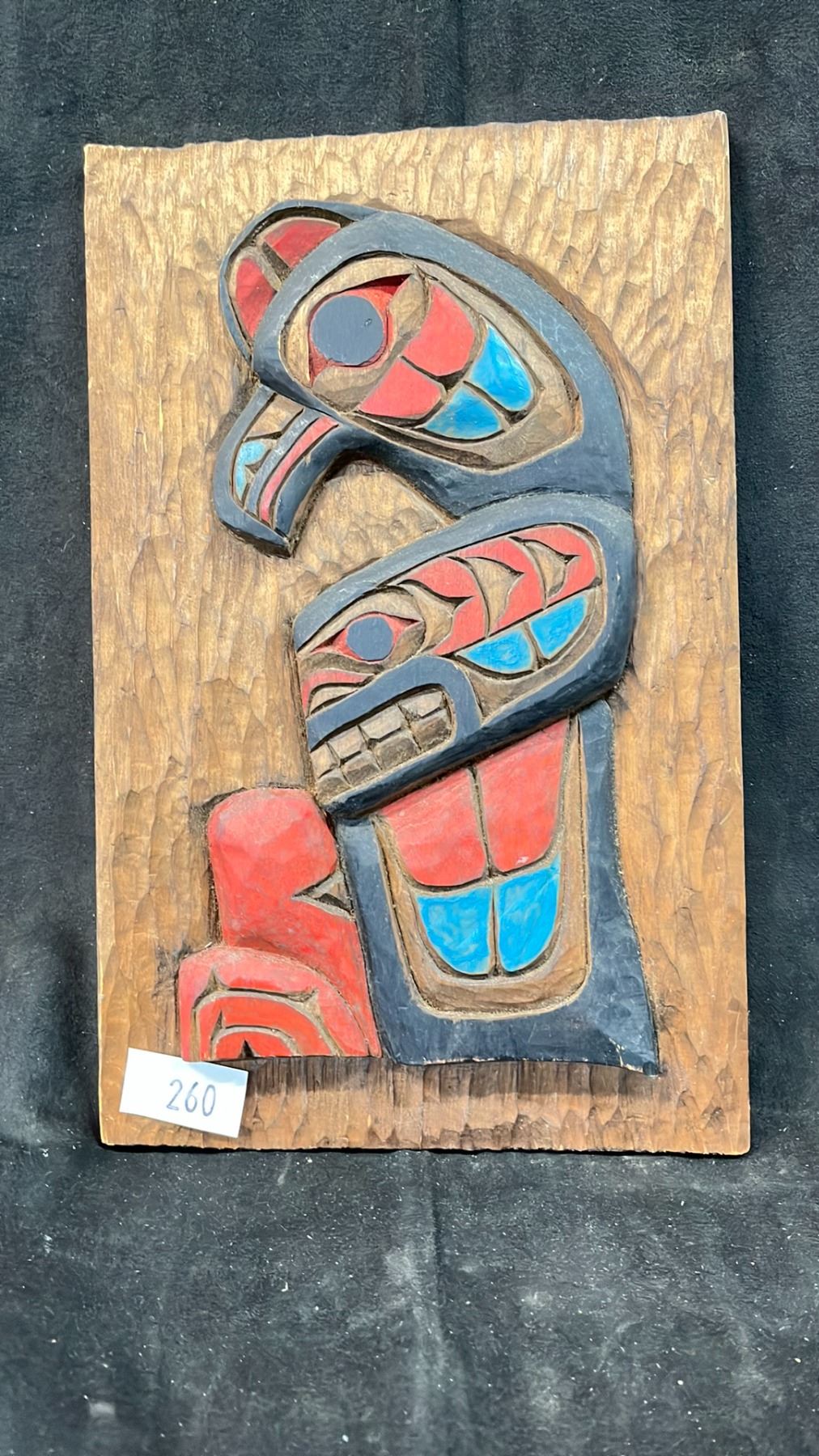 HAND CARVED FIRST NATIONS PLAQUE BY CHRIS JOHN 11.5" X 7"
