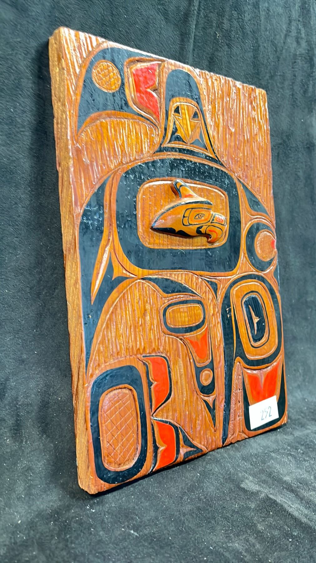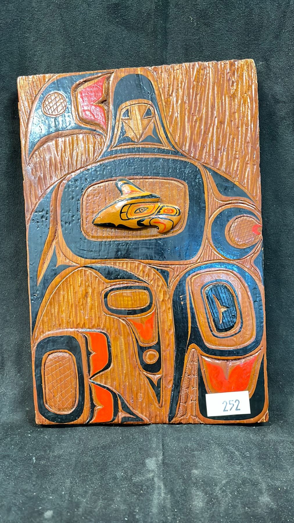 HAND CARVED FIRST NATIONS PLAQUE BY MATTHEW DUNCAN SR. TITLED "HERRING" 8" X 12"