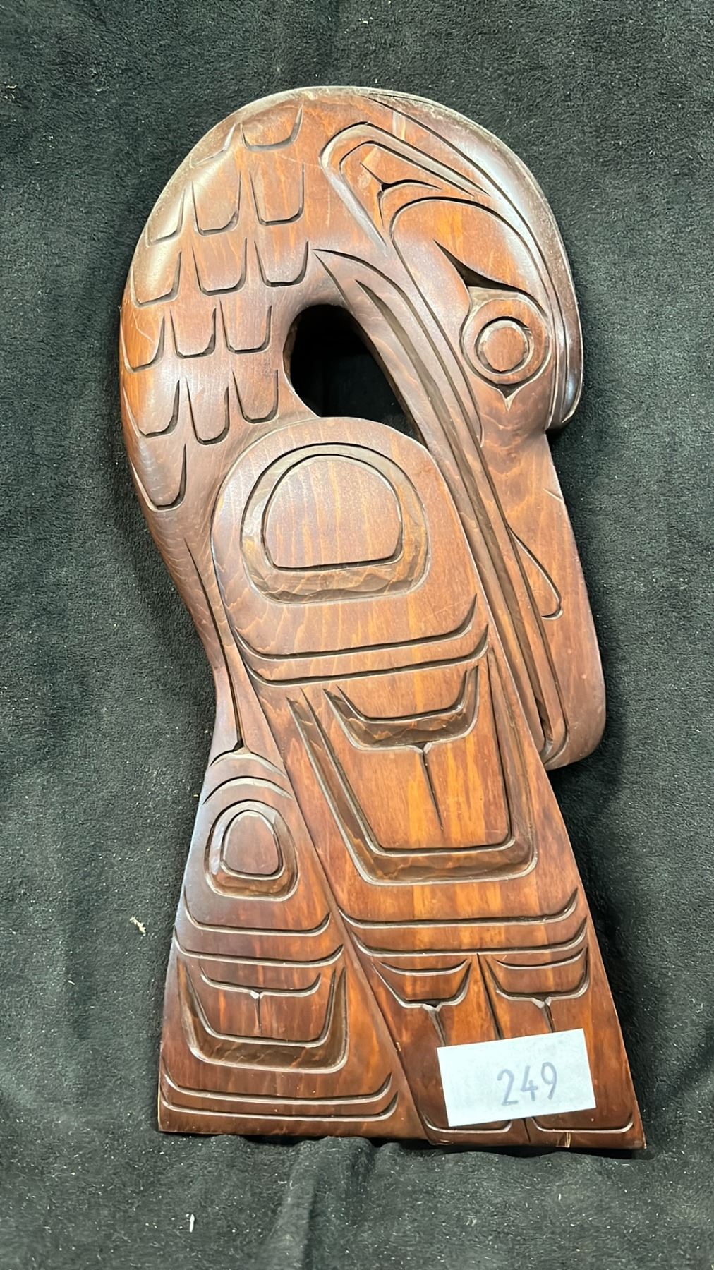 HAND CARVED FIRST NATIONS PLAQUE BY RICHARD BAKER TITLED "RAVEN" 11" X 5"