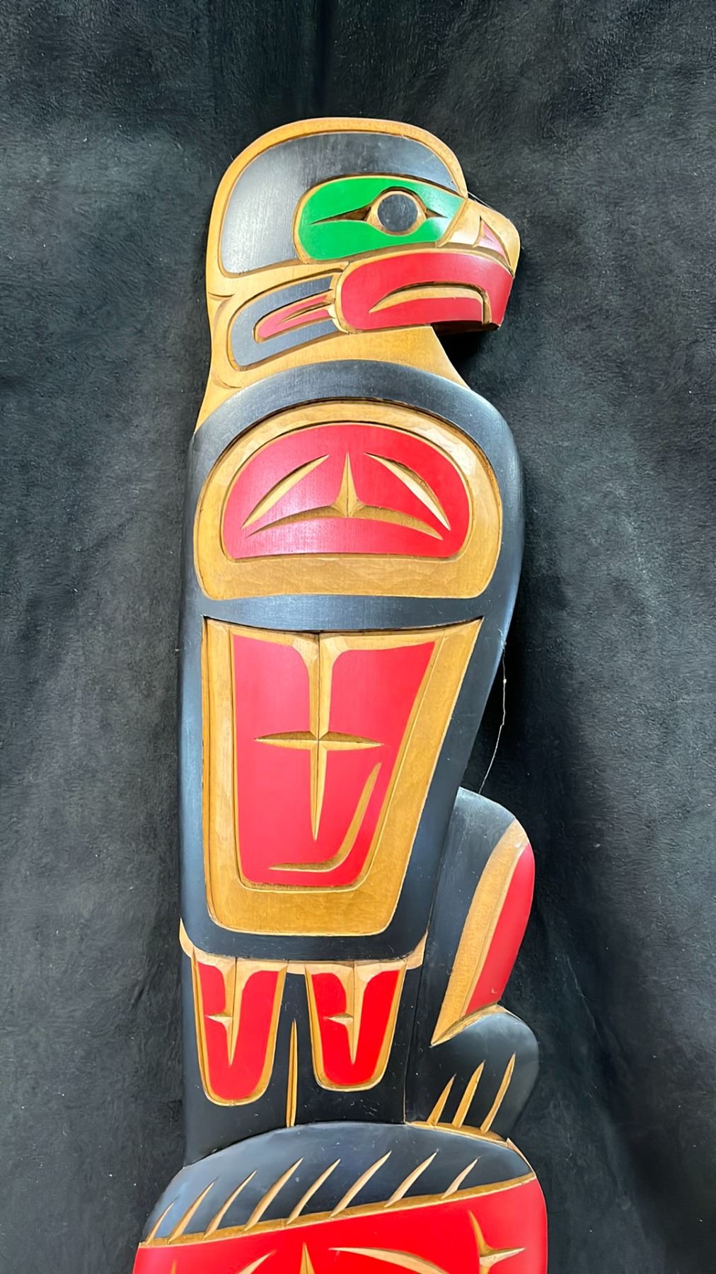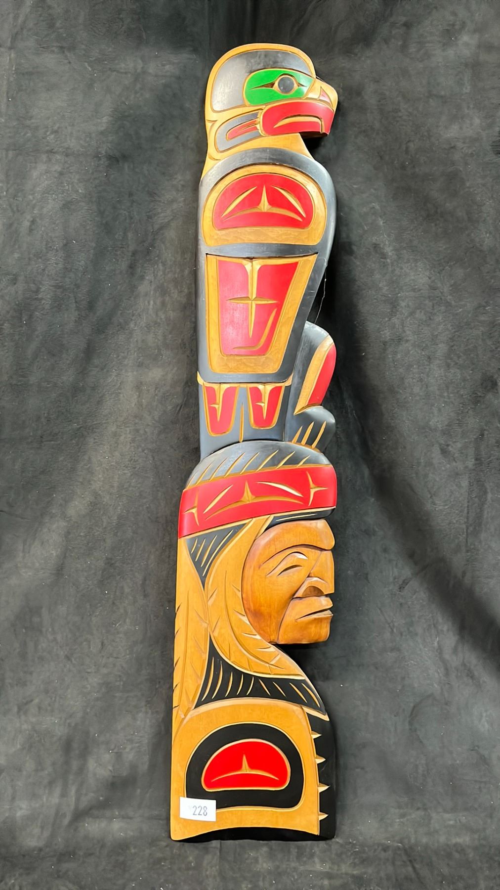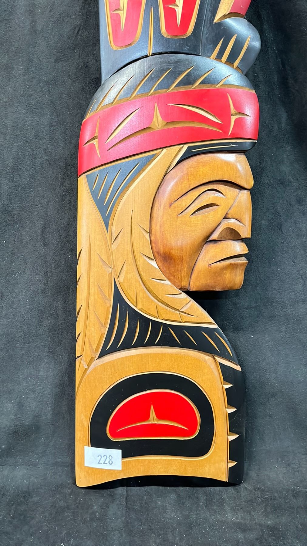 HAND CARVED FIRST NATIONS PLAQUE BY RICHARD KRAWCHUCK TITLED "EAGLE & CHIEF" 31" X 6.5"