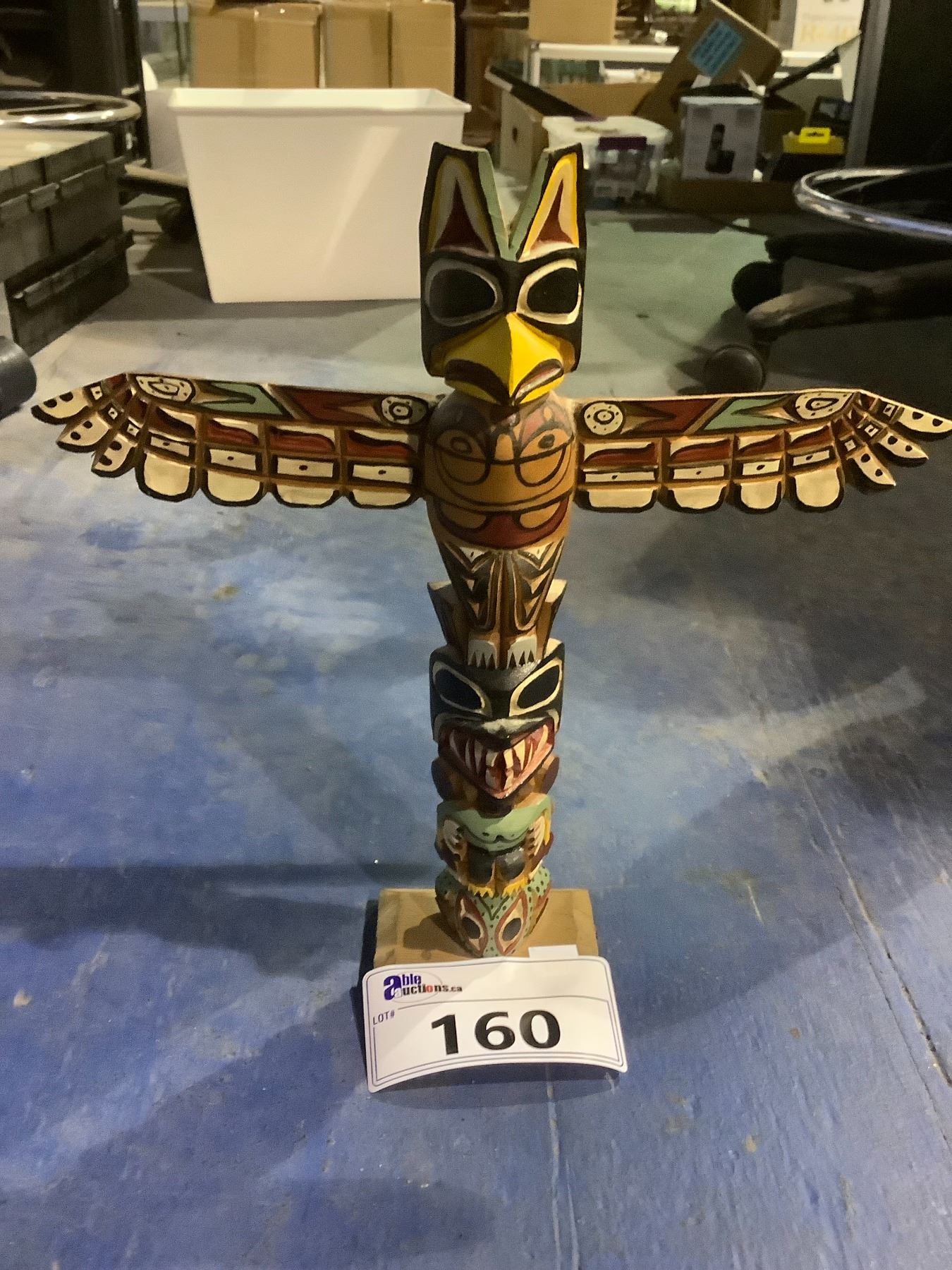 HAND CARVED WOODEN TABLE TOP TOTEM POLE SIGNED BY RAY WILLIAMS 13" TALL