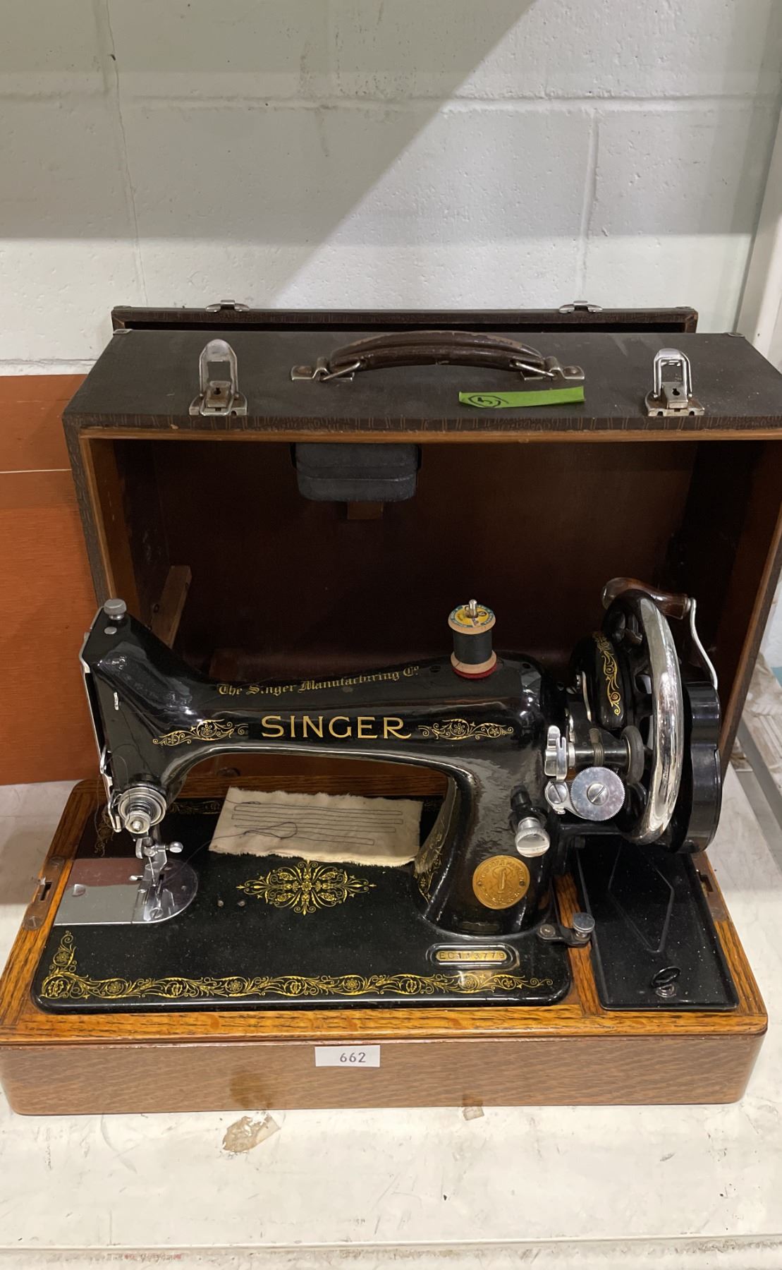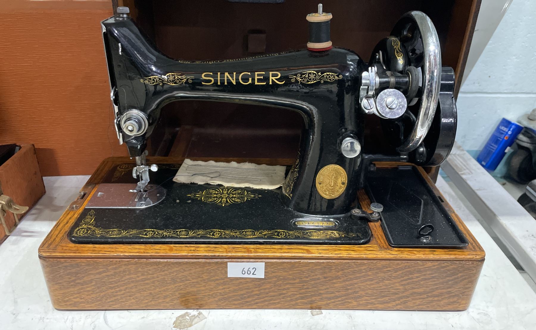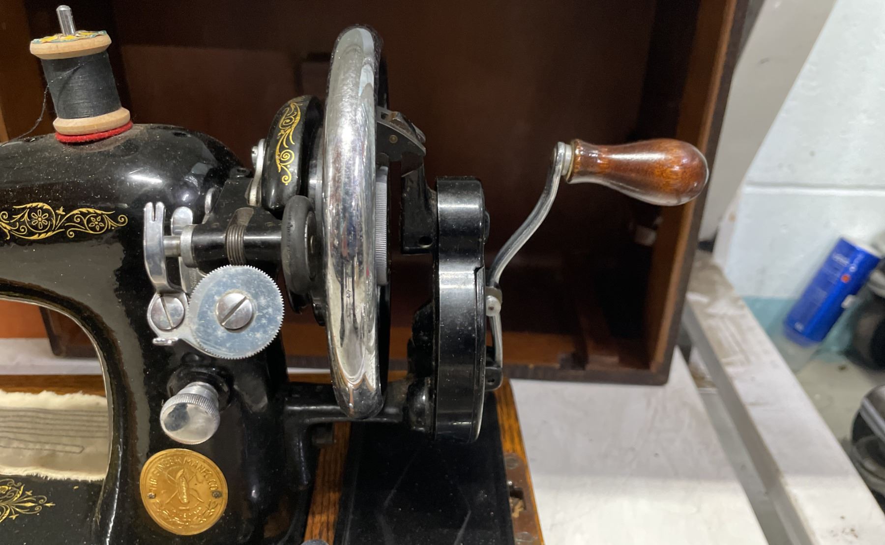 HAND OPERATED SINGER SEWING MACHINE WITH CASE