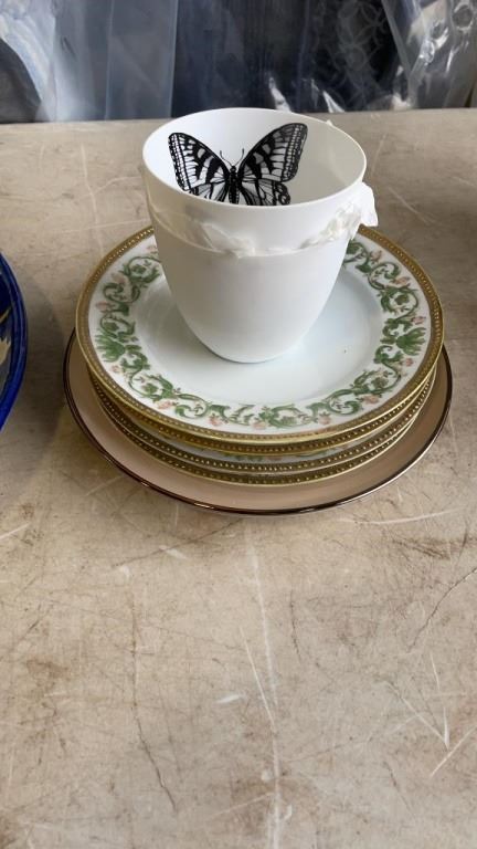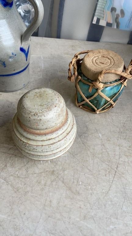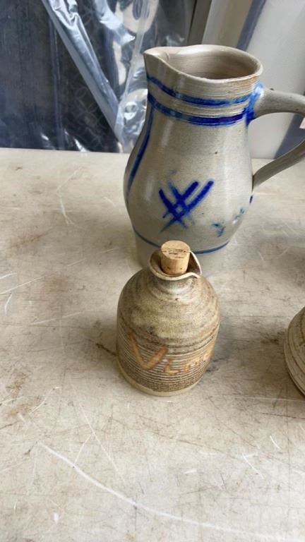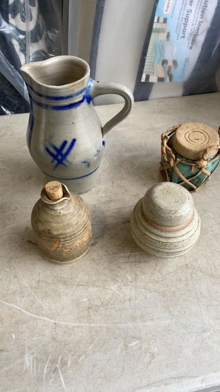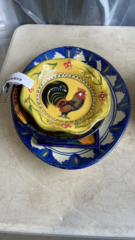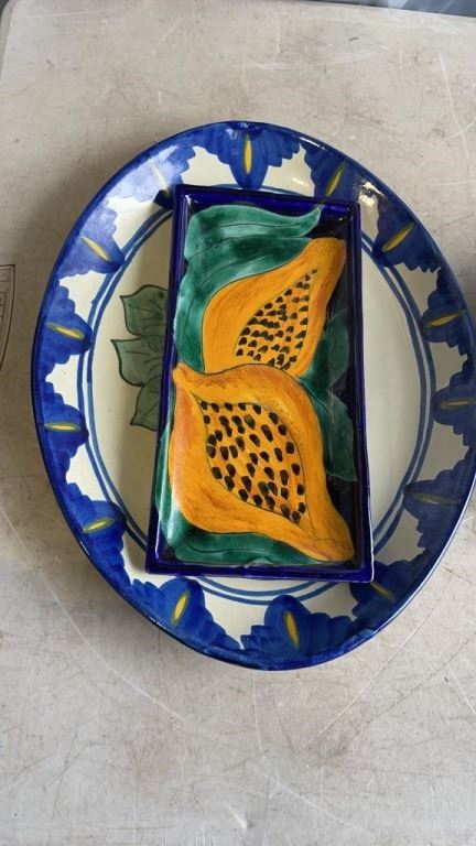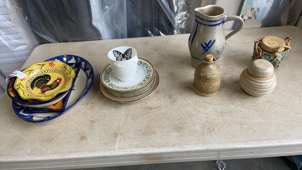 HAND PAINTED DISHES, POTTERY JUGS AND CONTAINERS AND SERVING DISHES